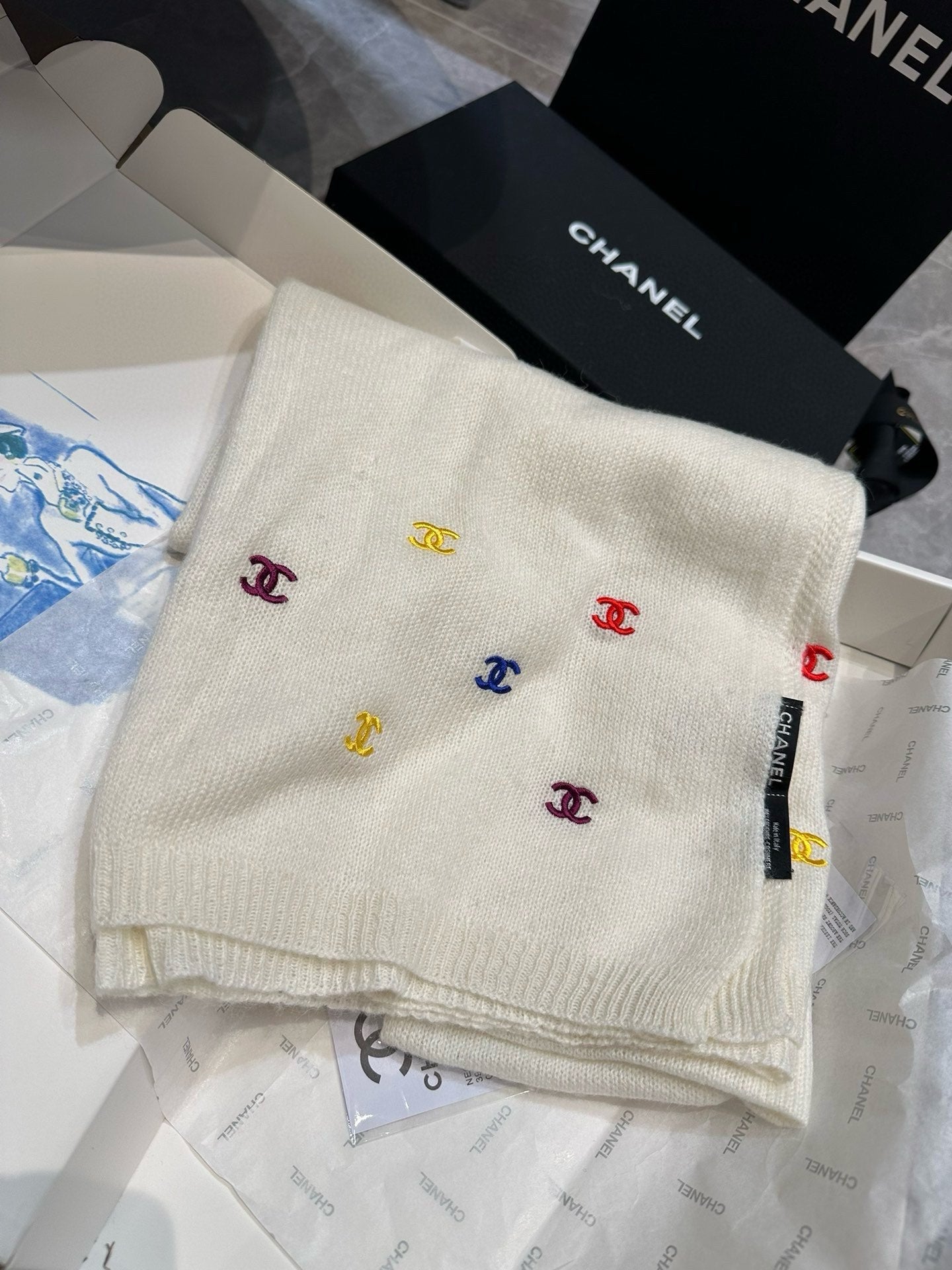 CC Scarf 195 CM In White Colorful Cashmere 418286