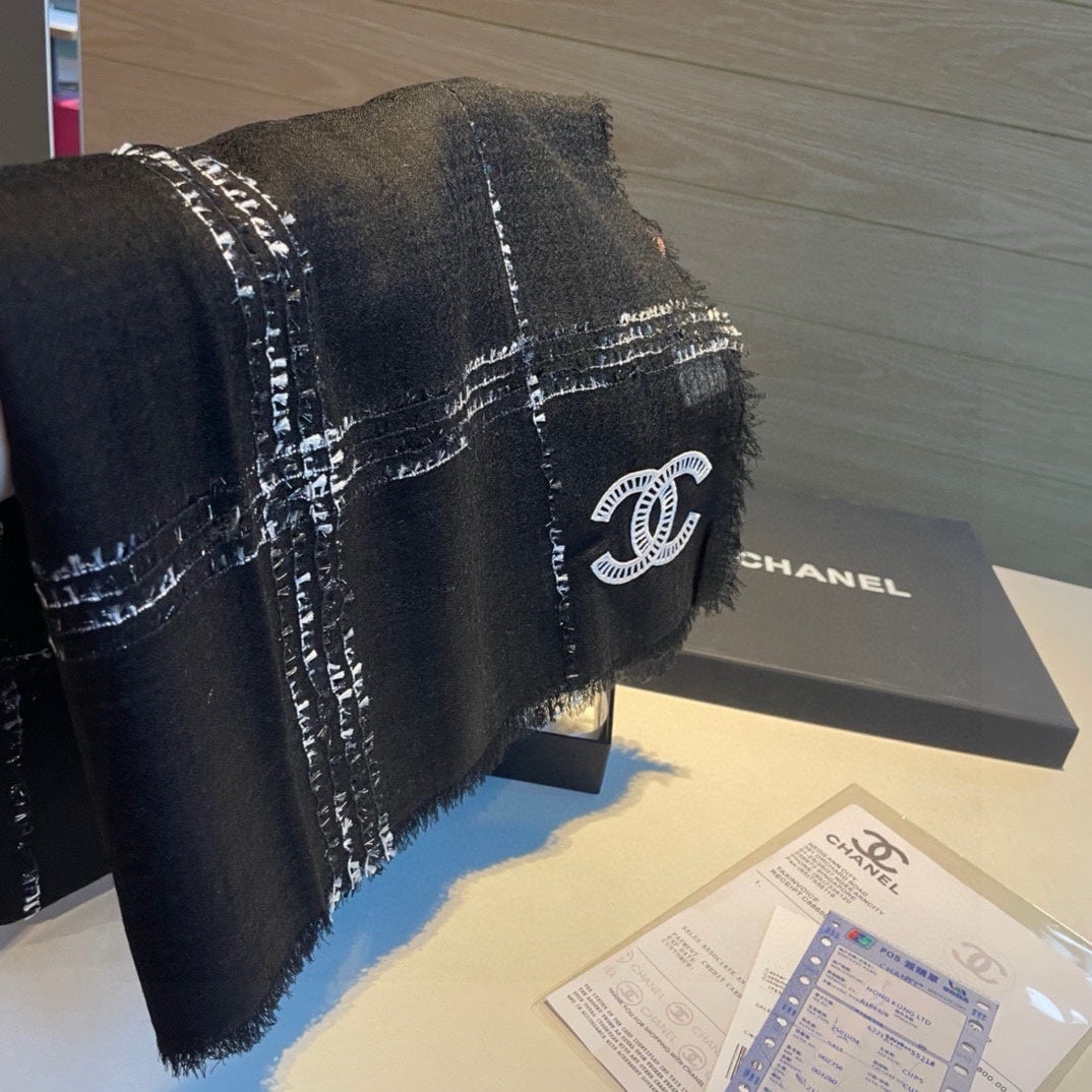 CC Scarf 200 CM In Black With White Stripes Cashmere 385514