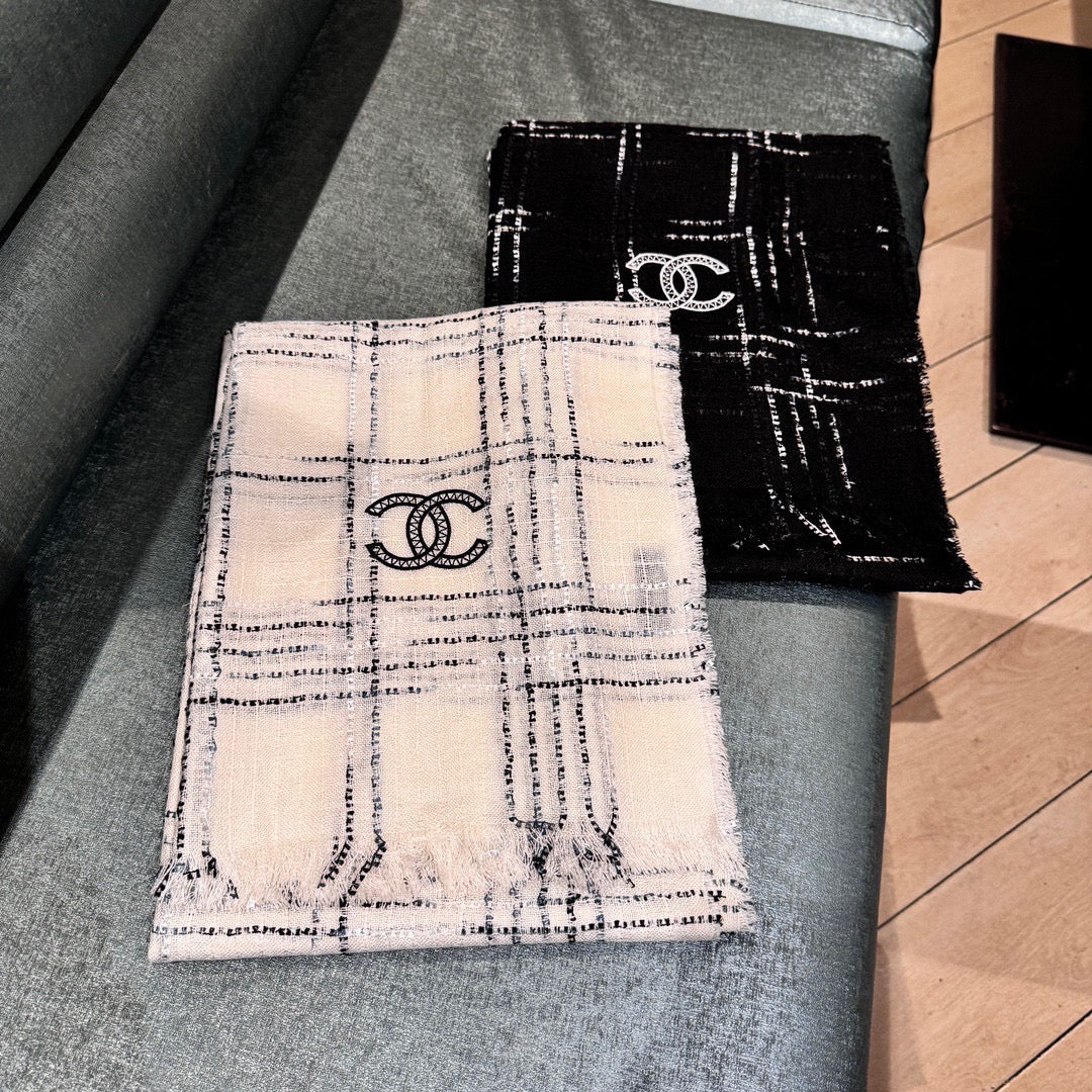 CC Scarf 200 CM In Black With White Stripes Cashmere 394656