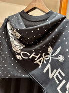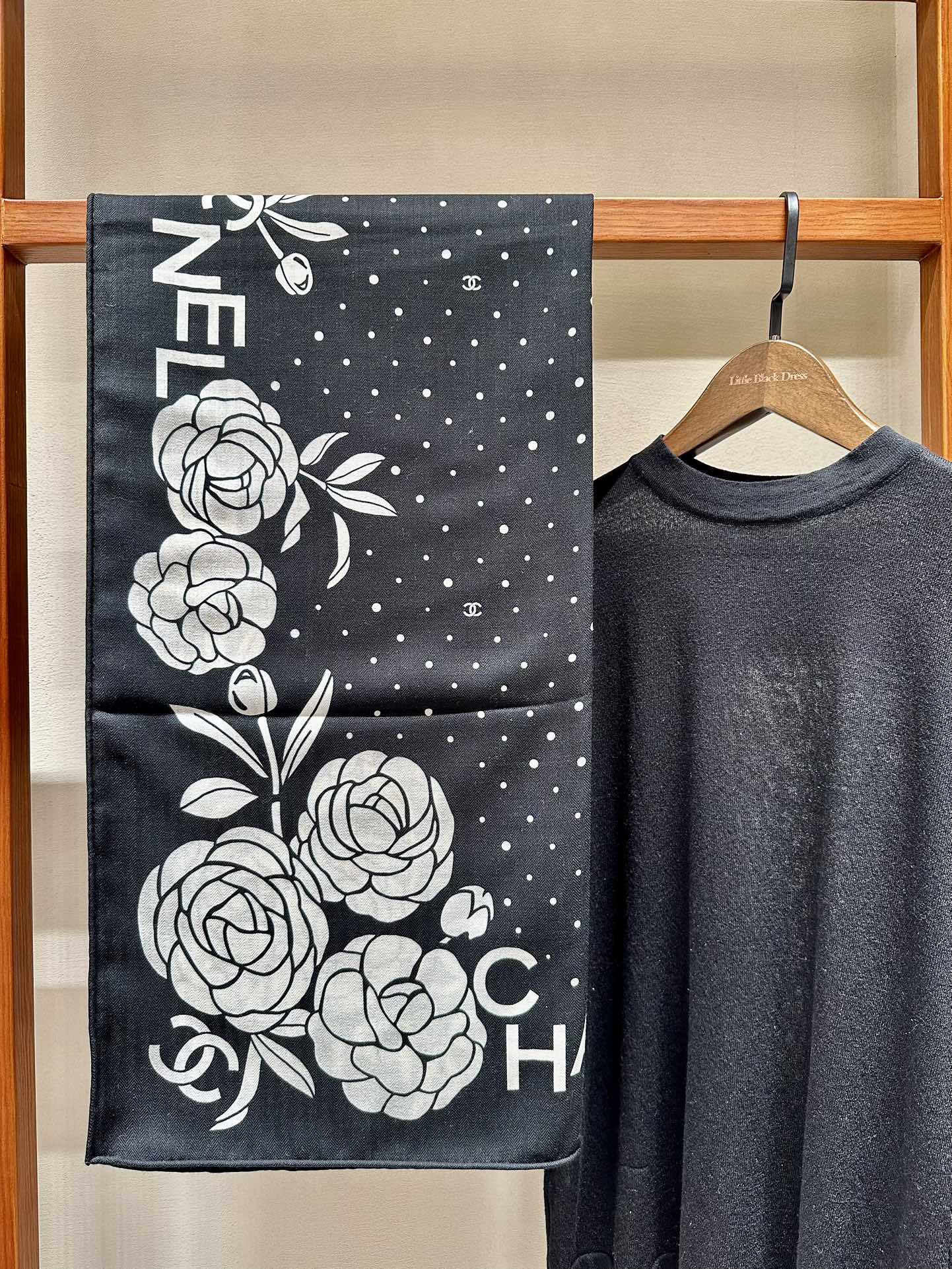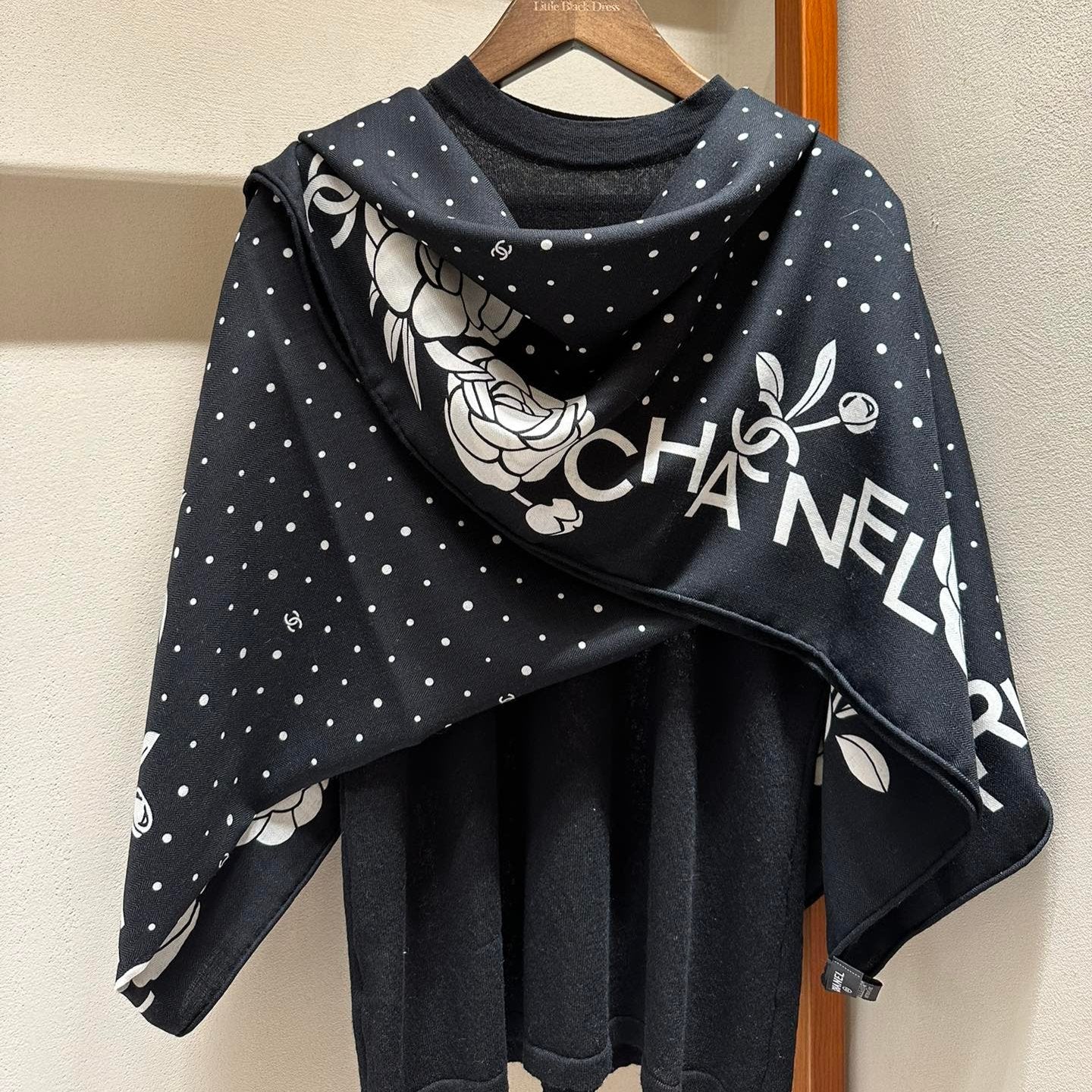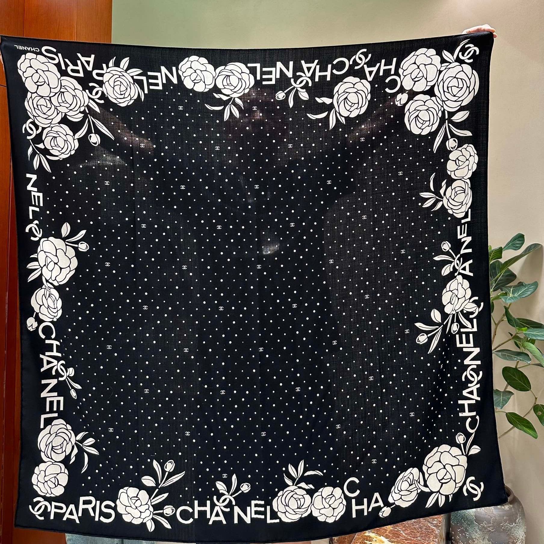 CC Square Scarf 140 CM In Black Mix White Cashmere Silk 383803
