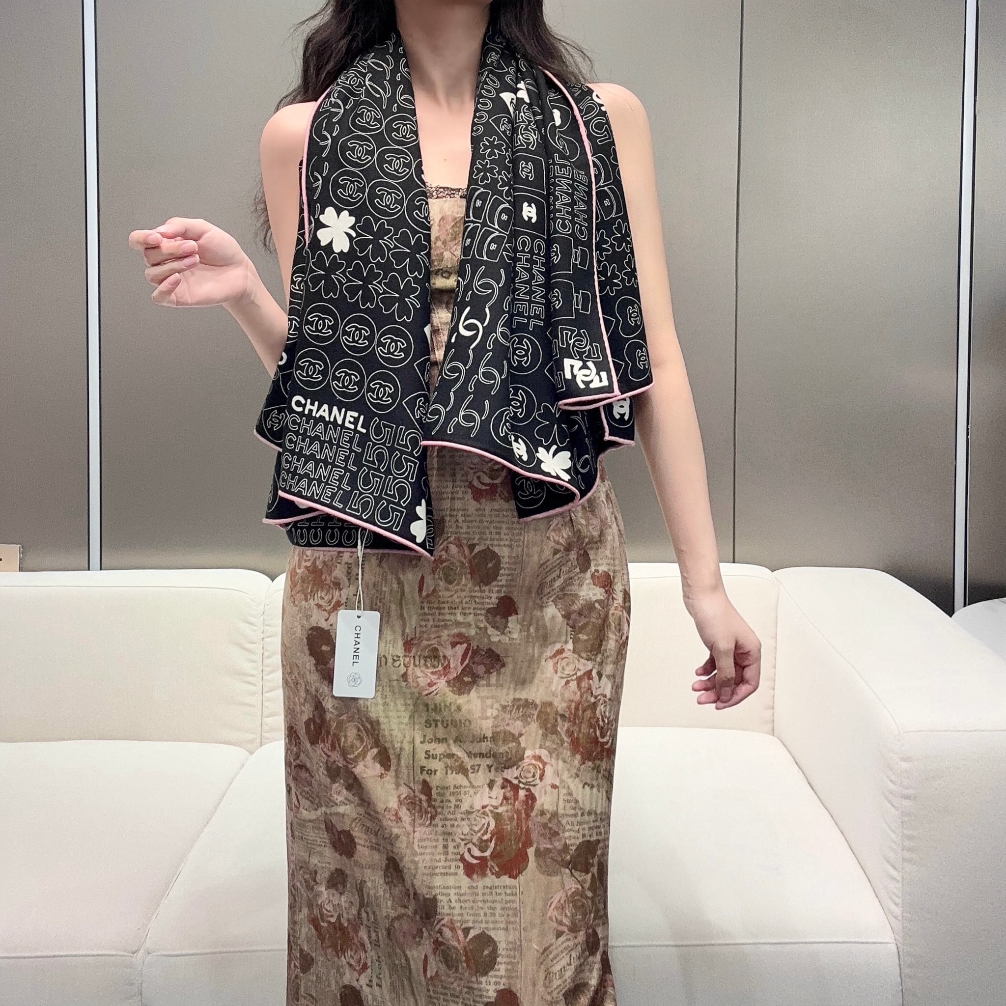 CC Square Scarf 140 CM In Black Silk 424551