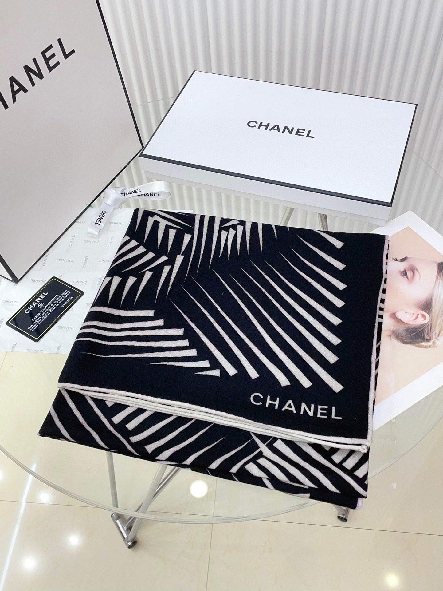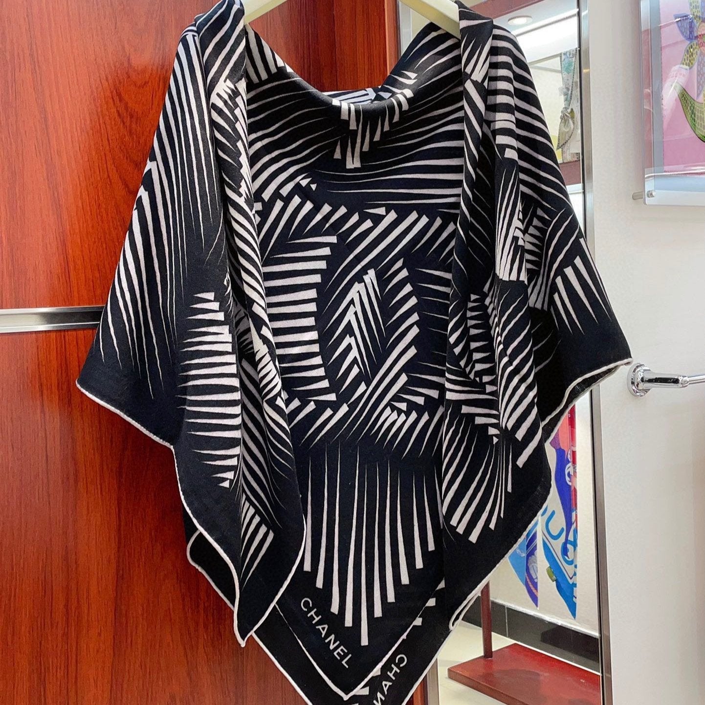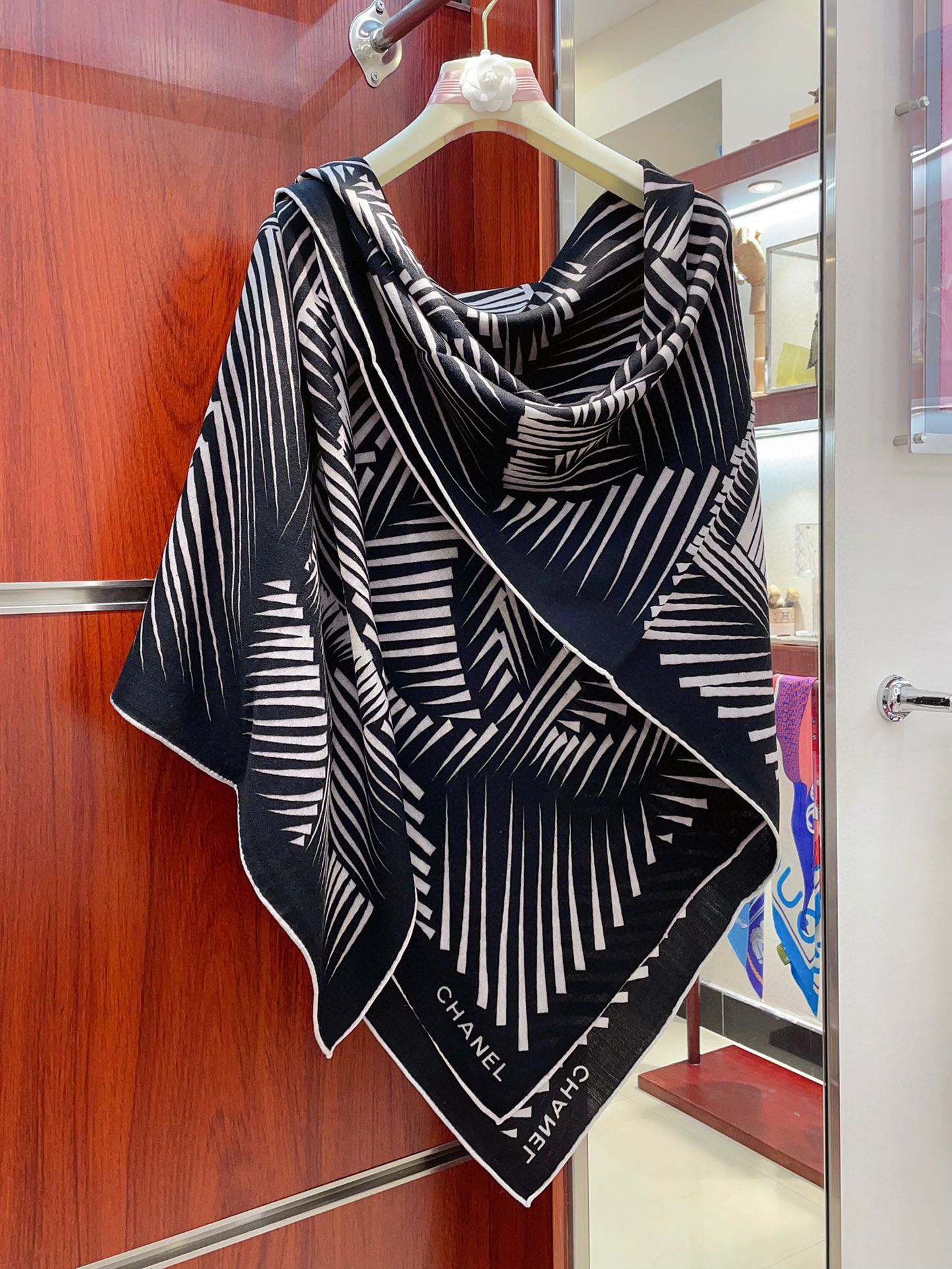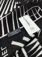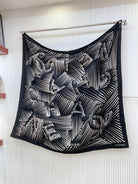 CC Square Scarf 140 CM In Black White Cashmere Mix Silk 382617