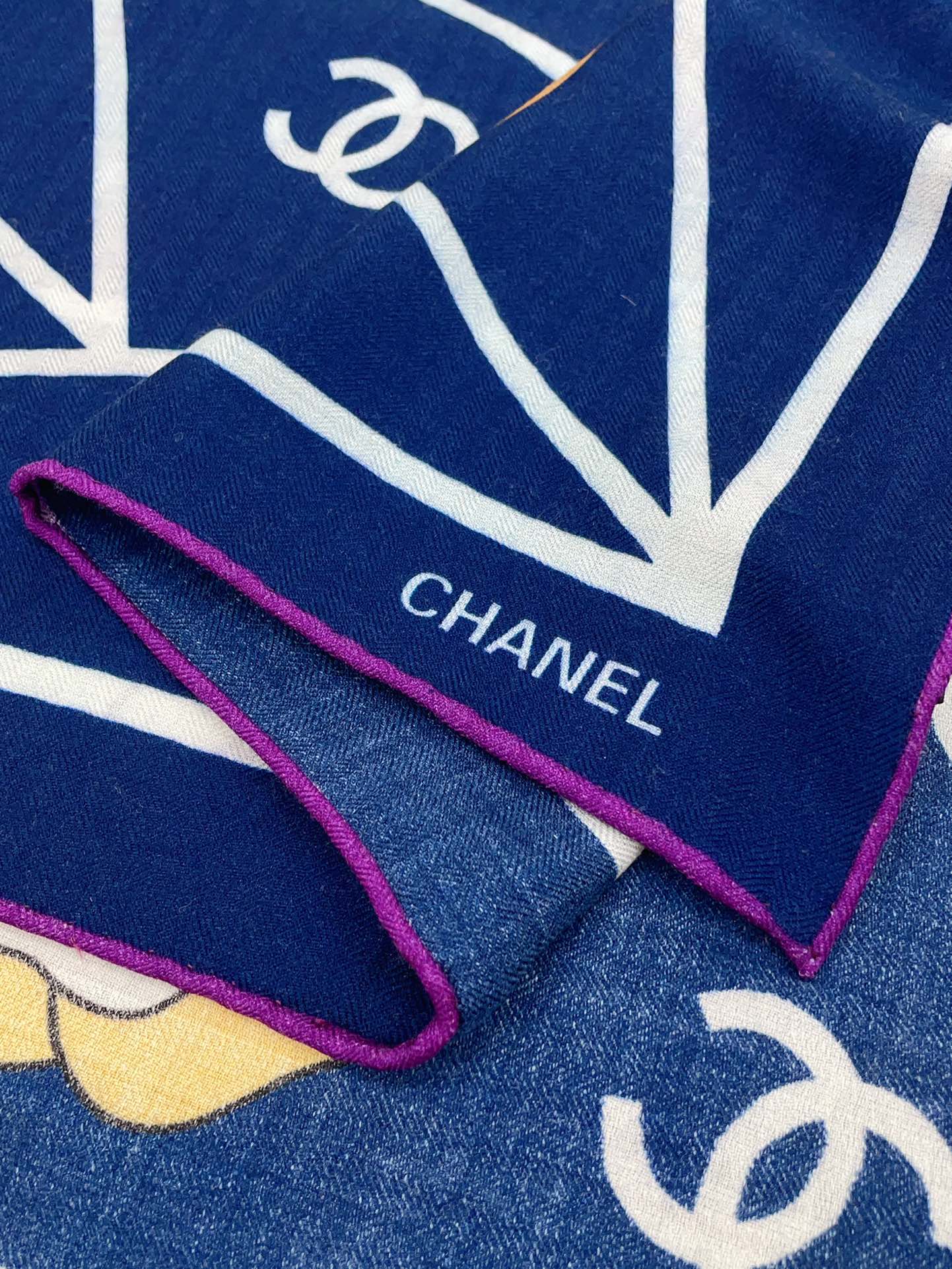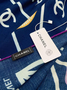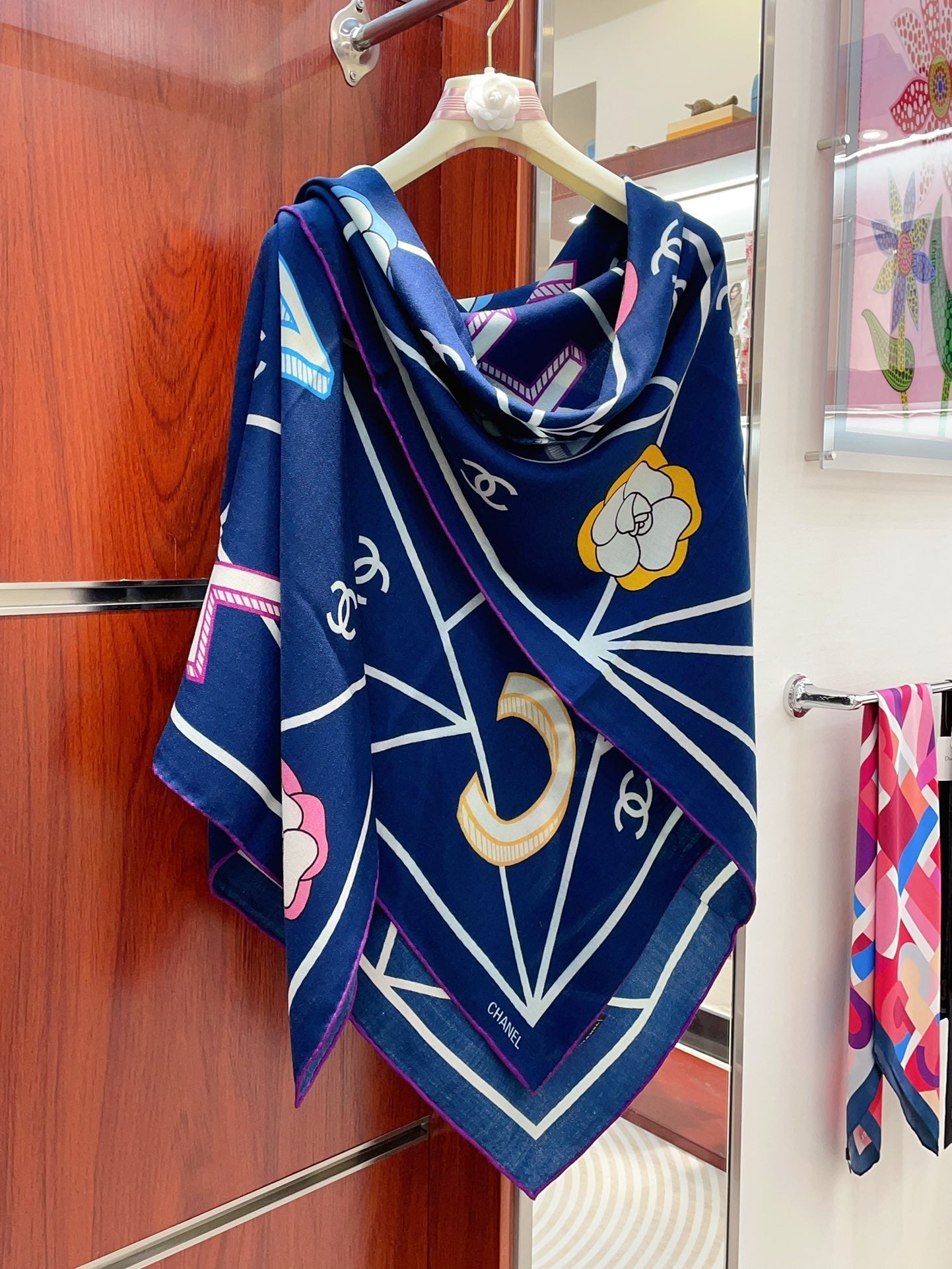 CC Square Scarf 140 CM In Dark Blue Colorful Cashmere Silk 418207