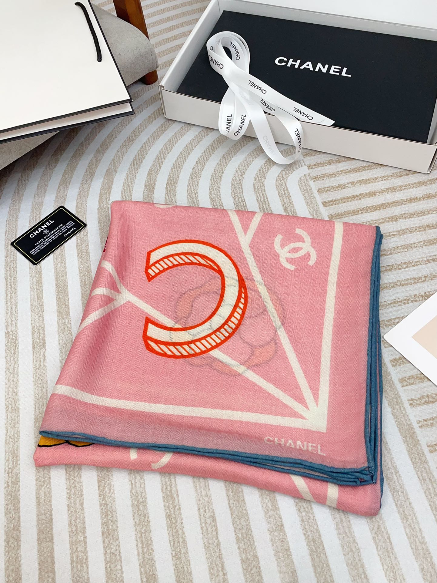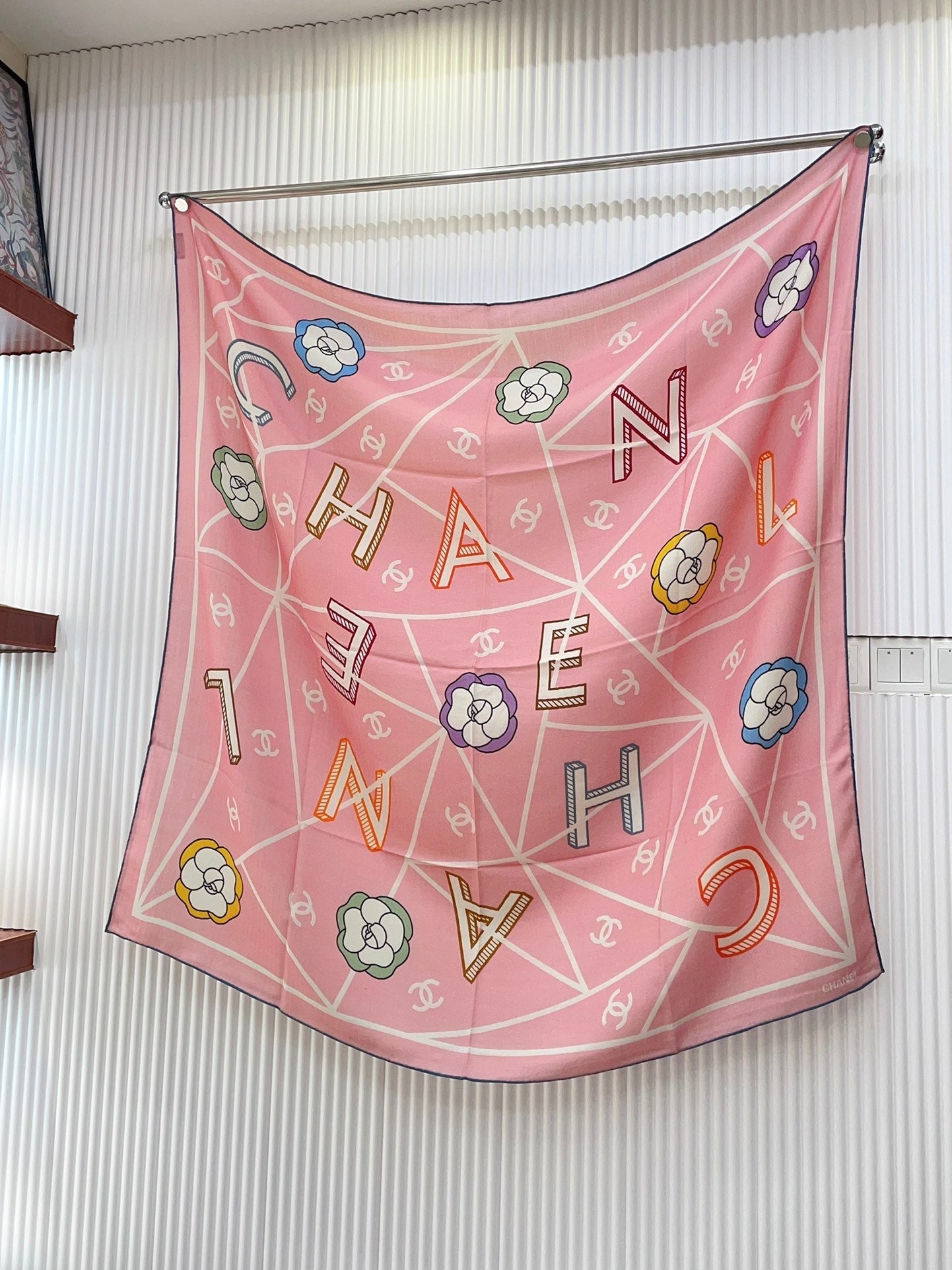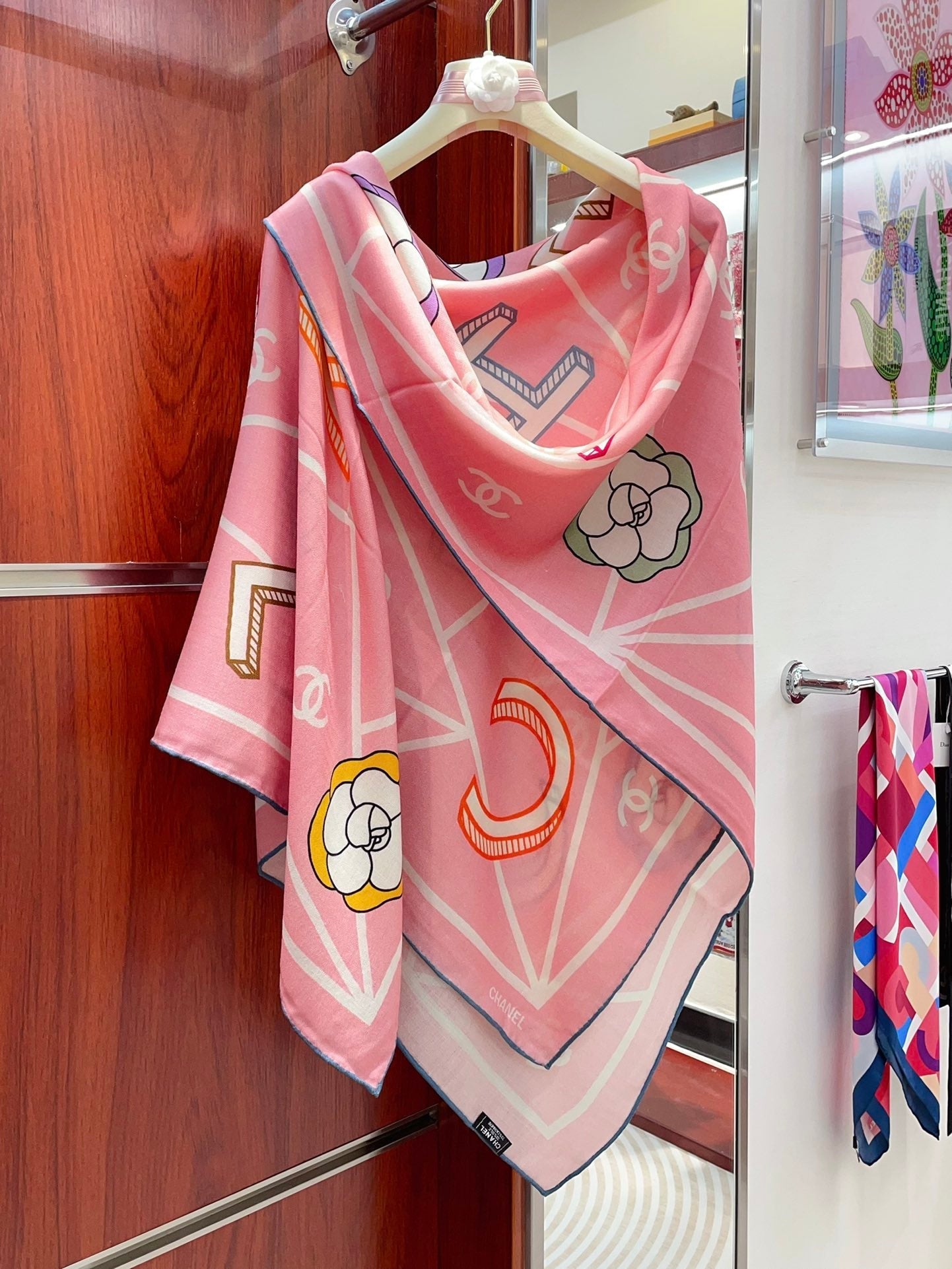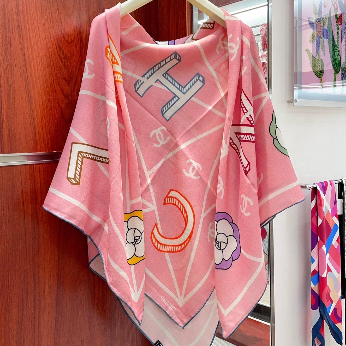 CC Square Scarf 140 CM In Pink Colorful Cashmere Silk 418208