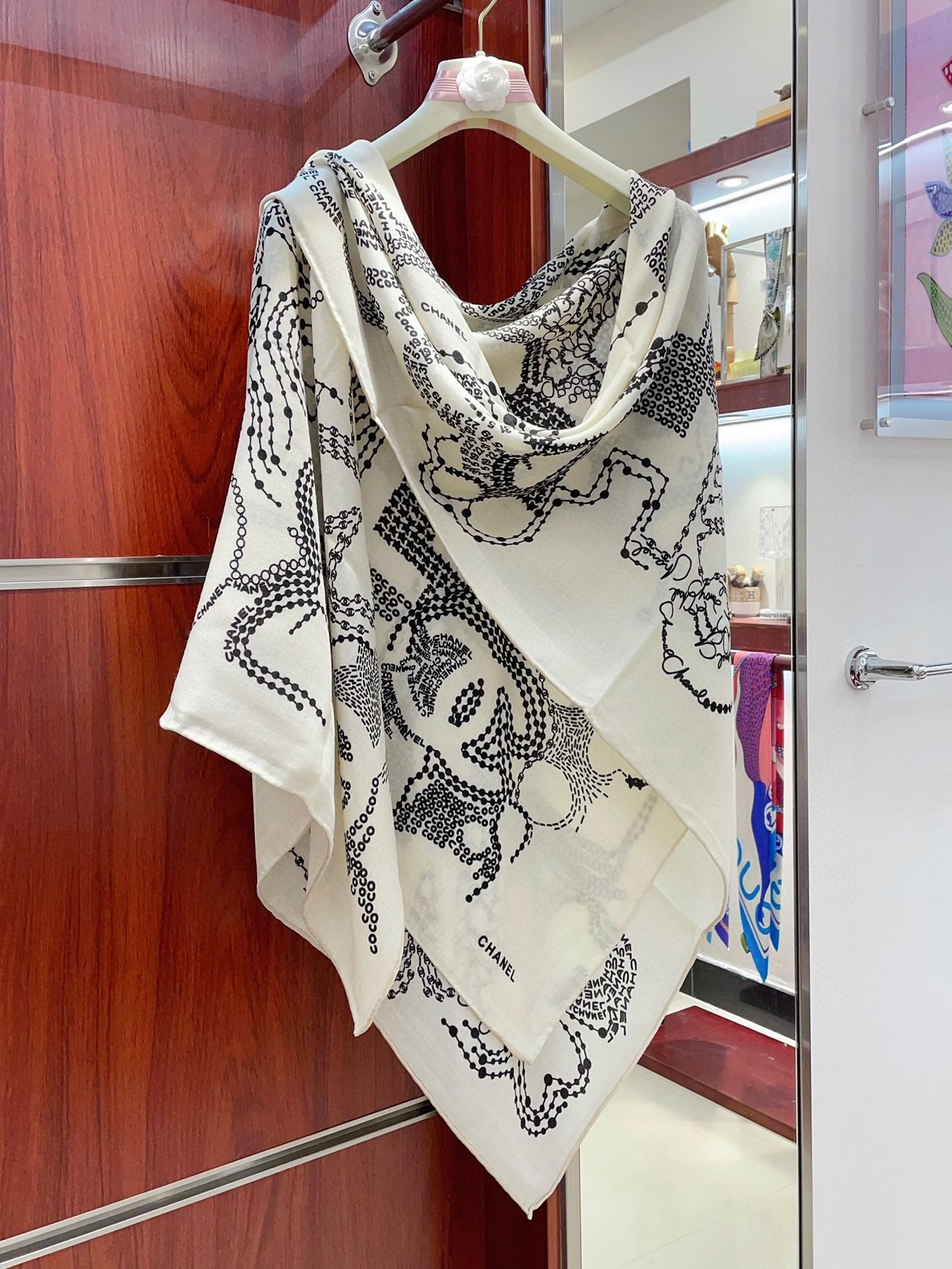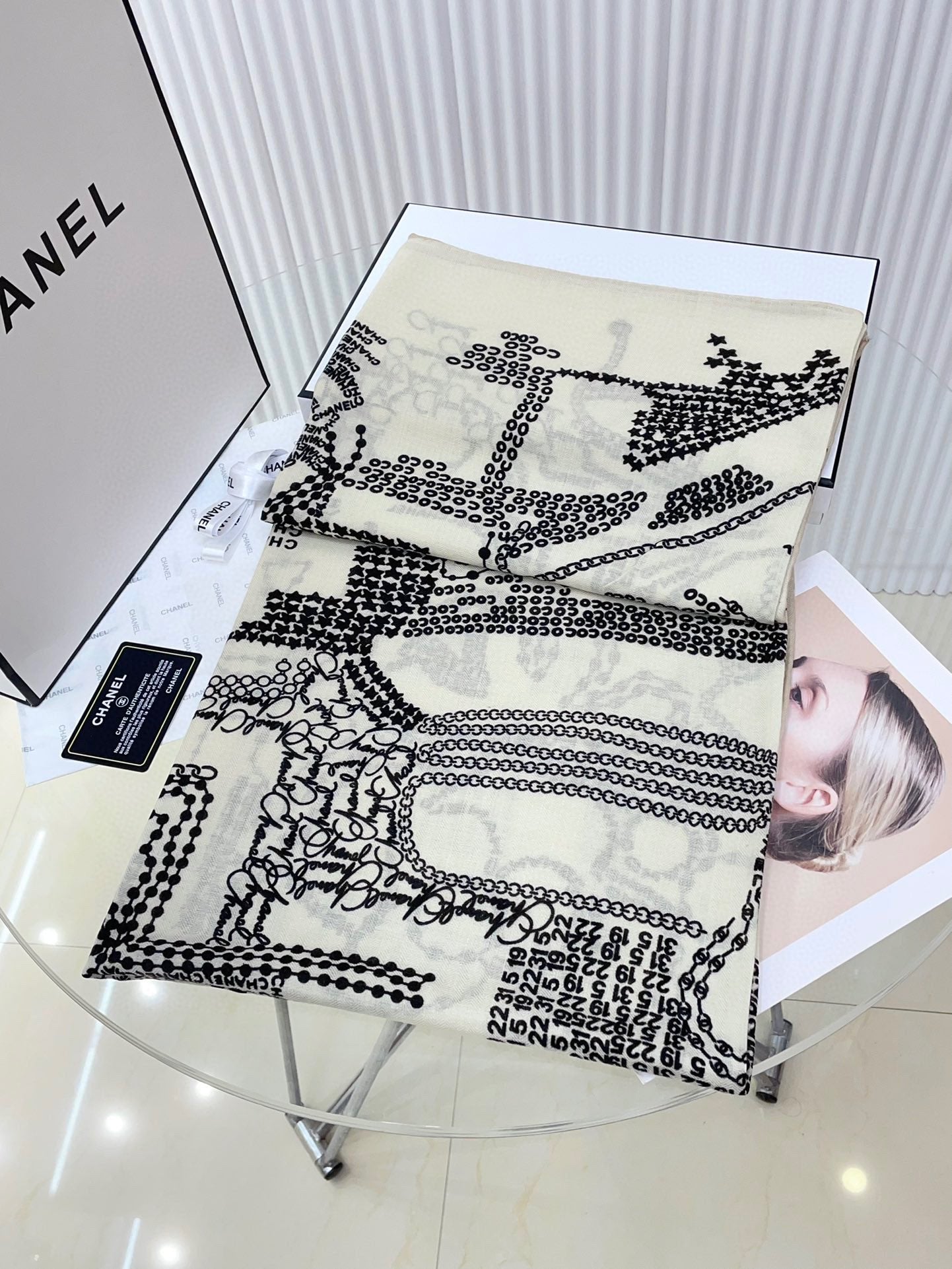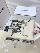CC Square Scarf 140 CM In White Black Cashmere And Silk 424559