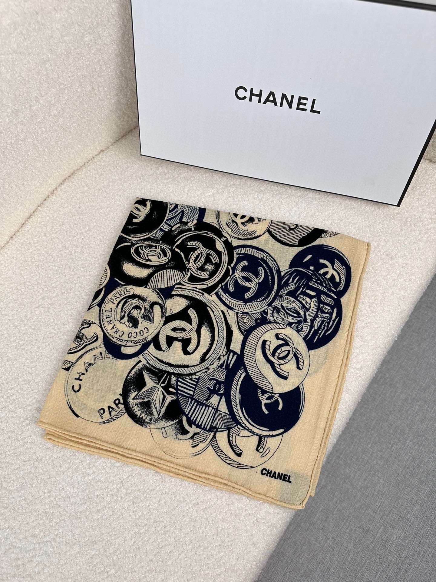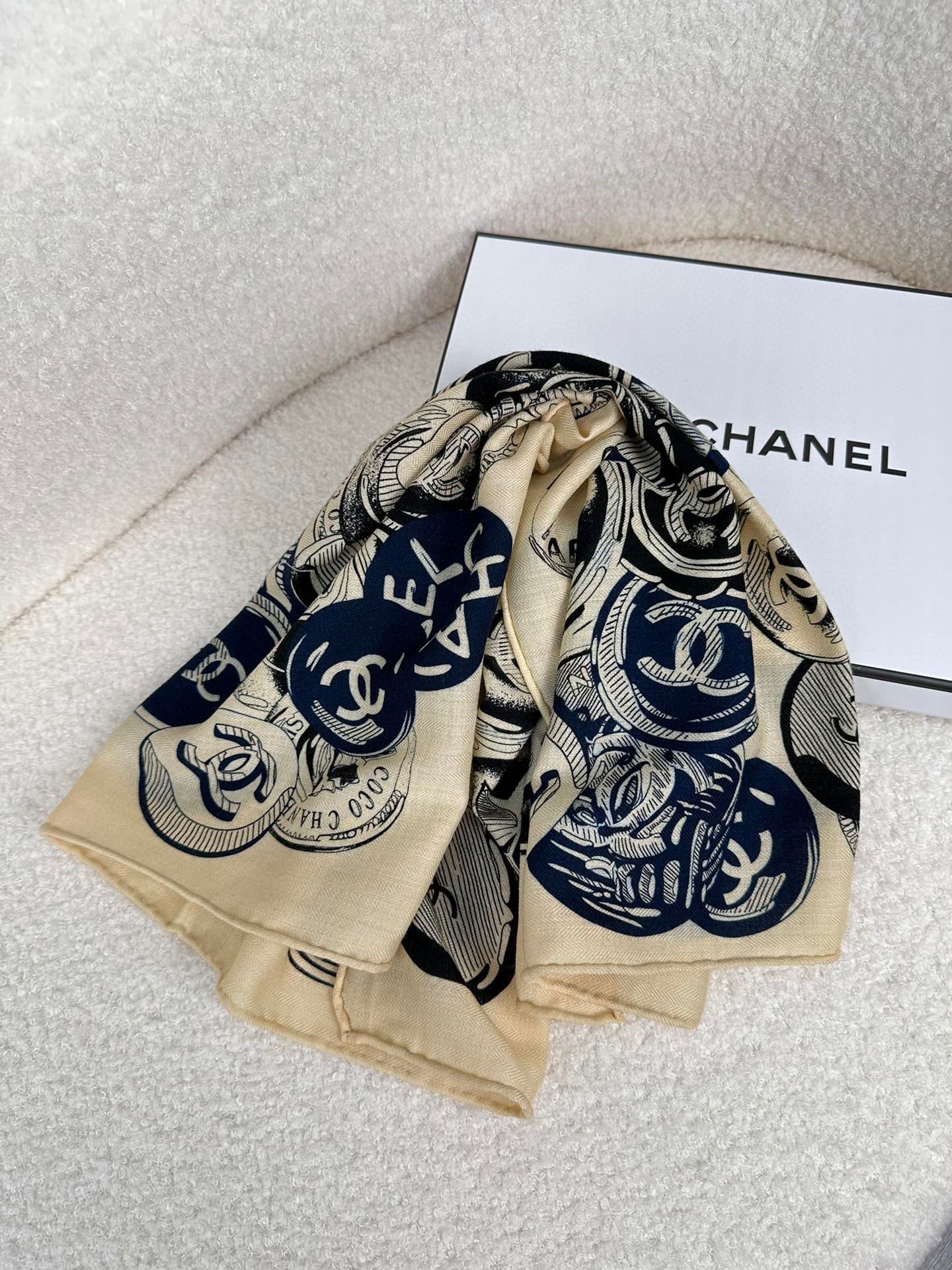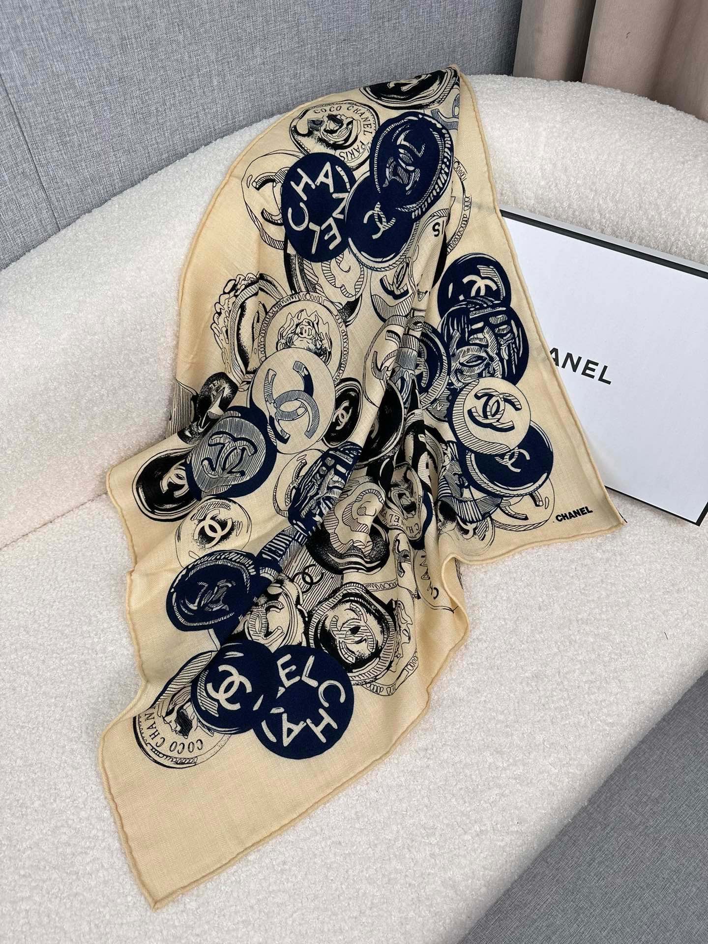 CC Square Scarf 70 CM In Beige Colorful Cashmere And Silk 399804