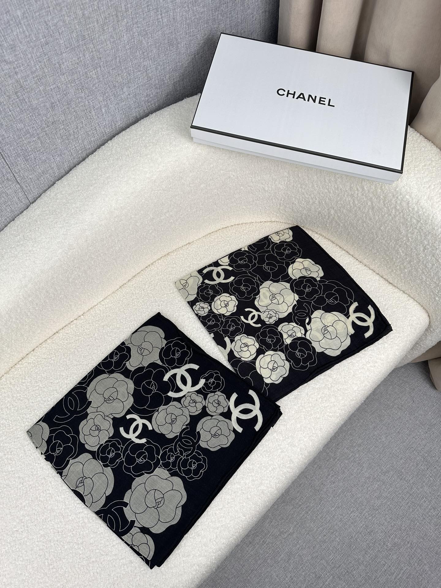 CC Square Scarf 70 CM In Black Mix Grey Camellia Cashmere And Silk 367380