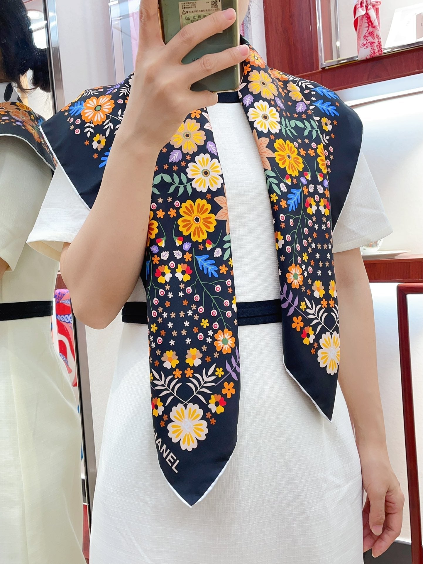 CC Square Scarf 90 CM In Black Colorful Silk Twill 234597