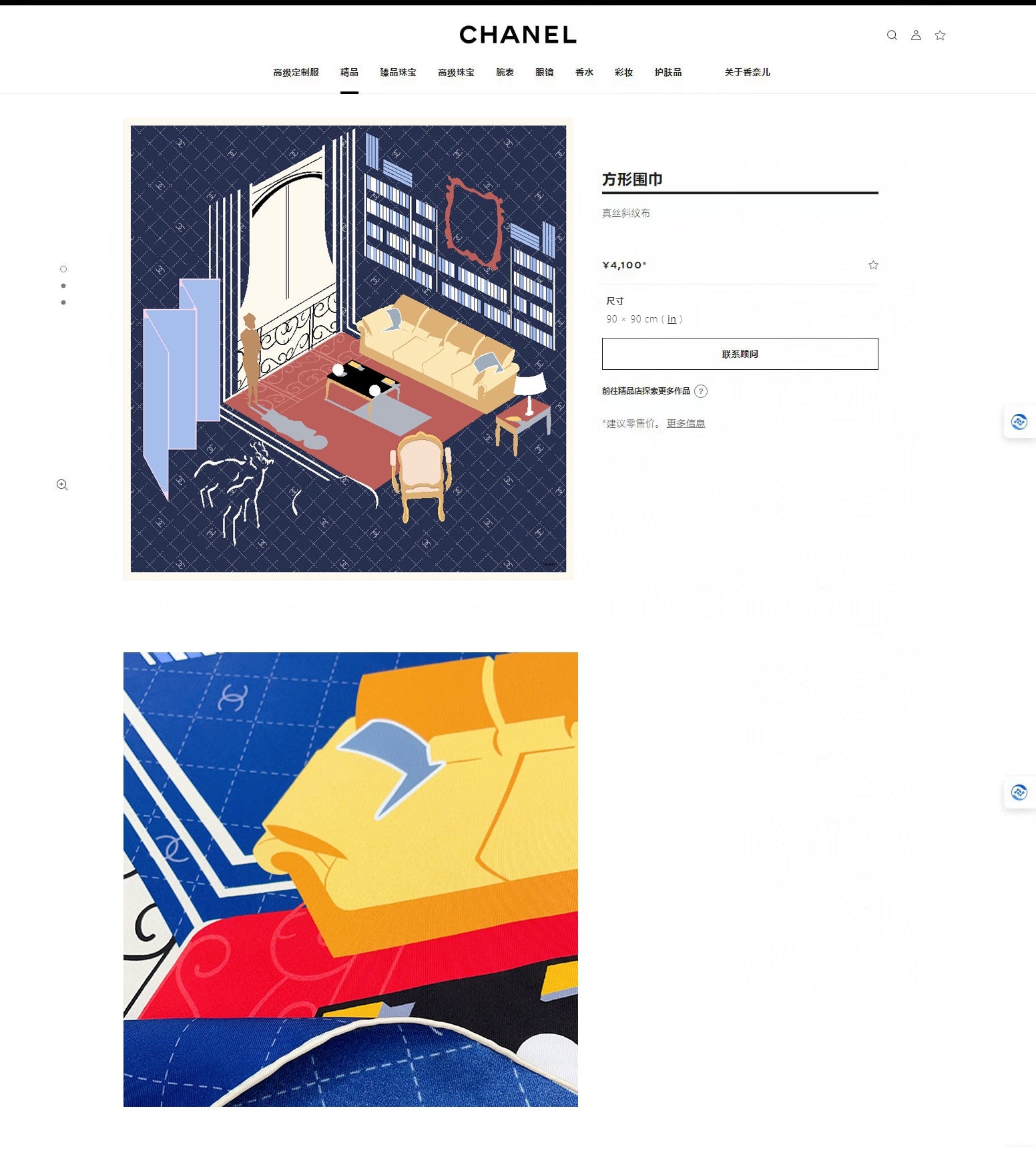 CC Square Scarf 90 CM In Dark Blue Colorful Silk Twill 187427