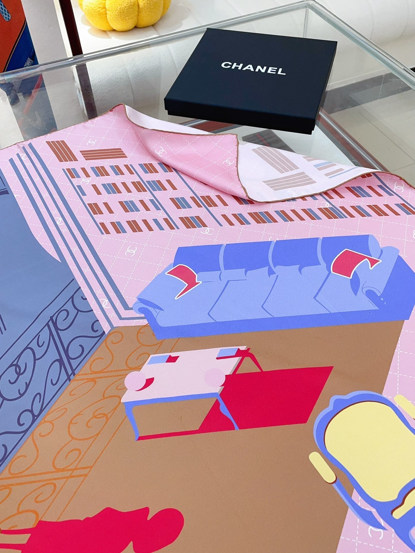 CC Square Scarf 90 CM In Pink Colorful Silk Twill 187428