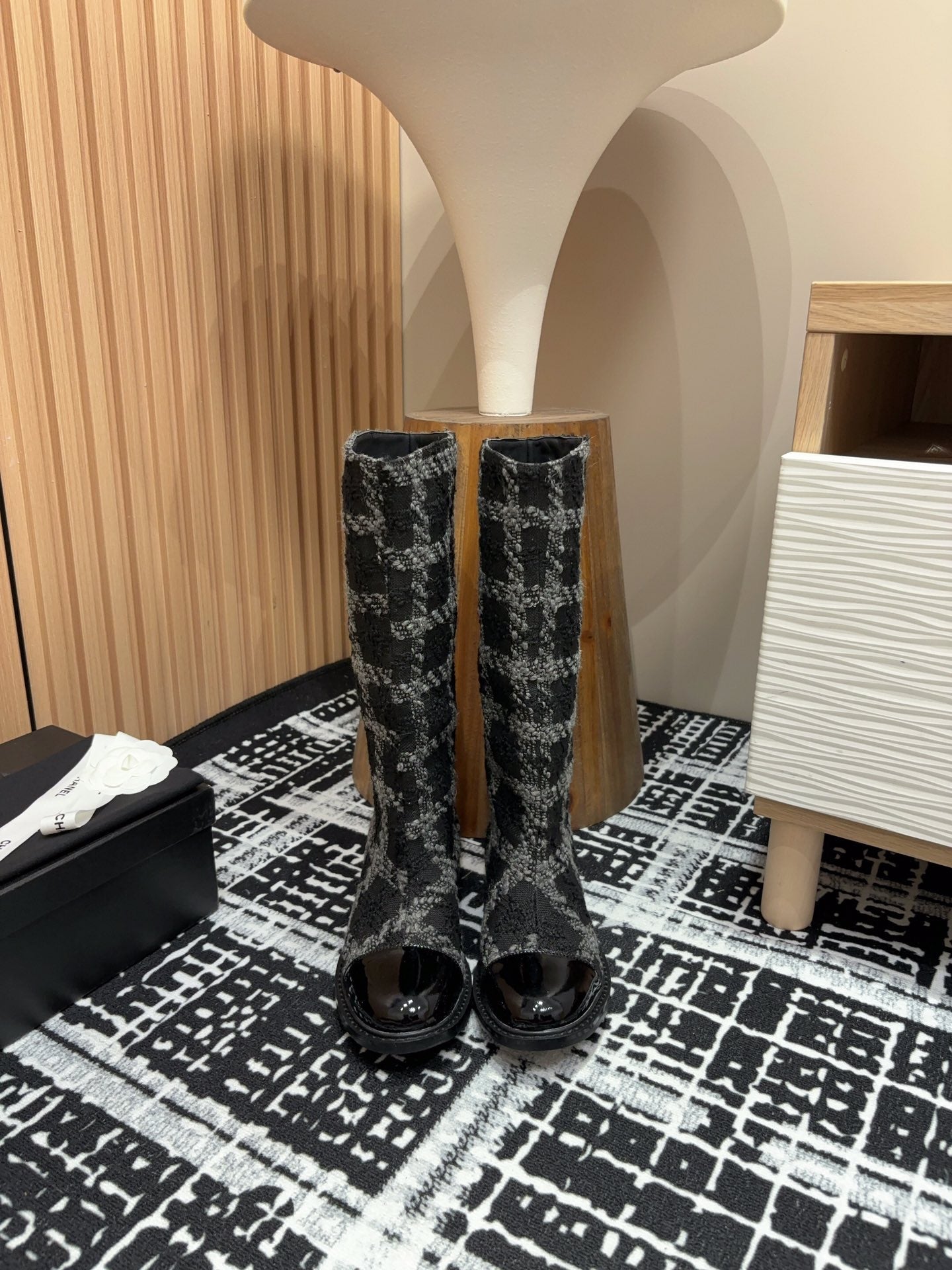 CC High Boots In Black Wool Tweed And Lambskin Gold Hardware