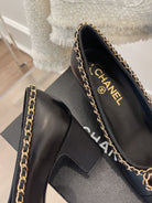 CC High Heels 65mm Black Bow Tie Chain Lambskin