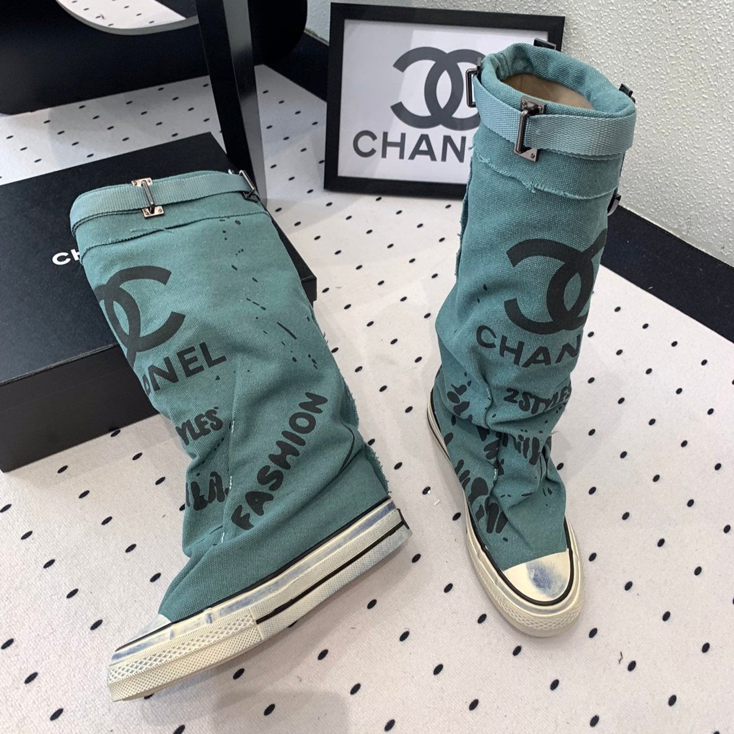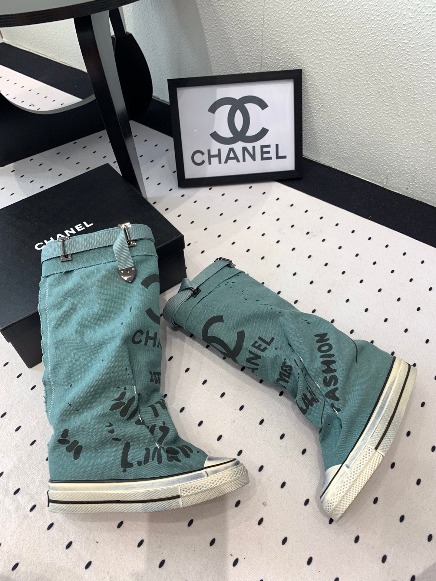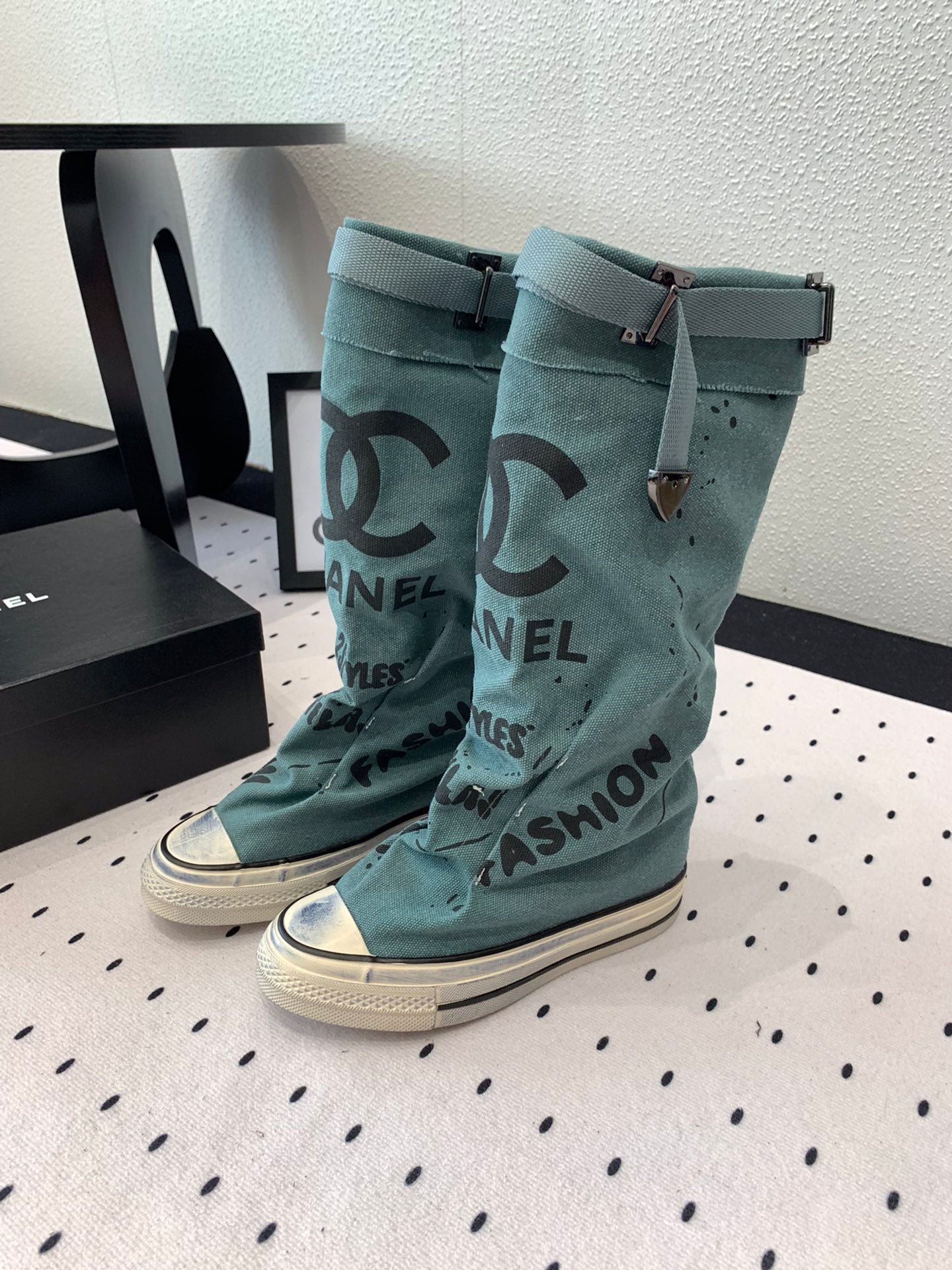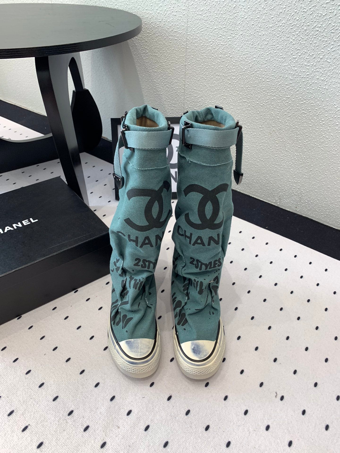 CC High-Top Canvas Boots Turquoise Black Denim Fabric 938047