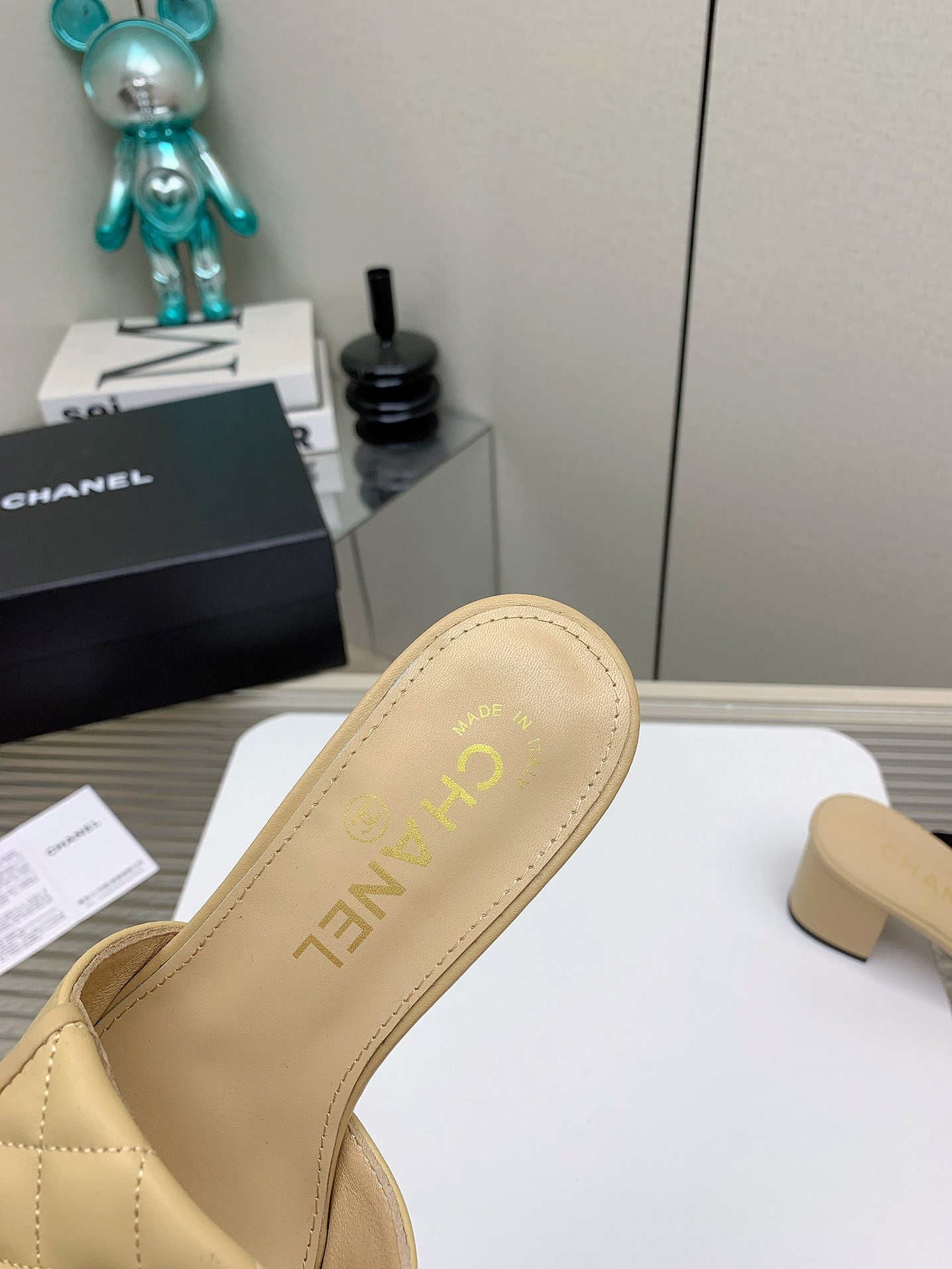 CC Mule Sandals 50mm In Beige Quilted Lambskin 148946