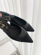 CC Slingback 15mm Black Lambskin And Denim Fabric