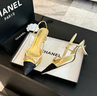 cc slingbacks 65 bow gold metalic lambskin black grosgrain