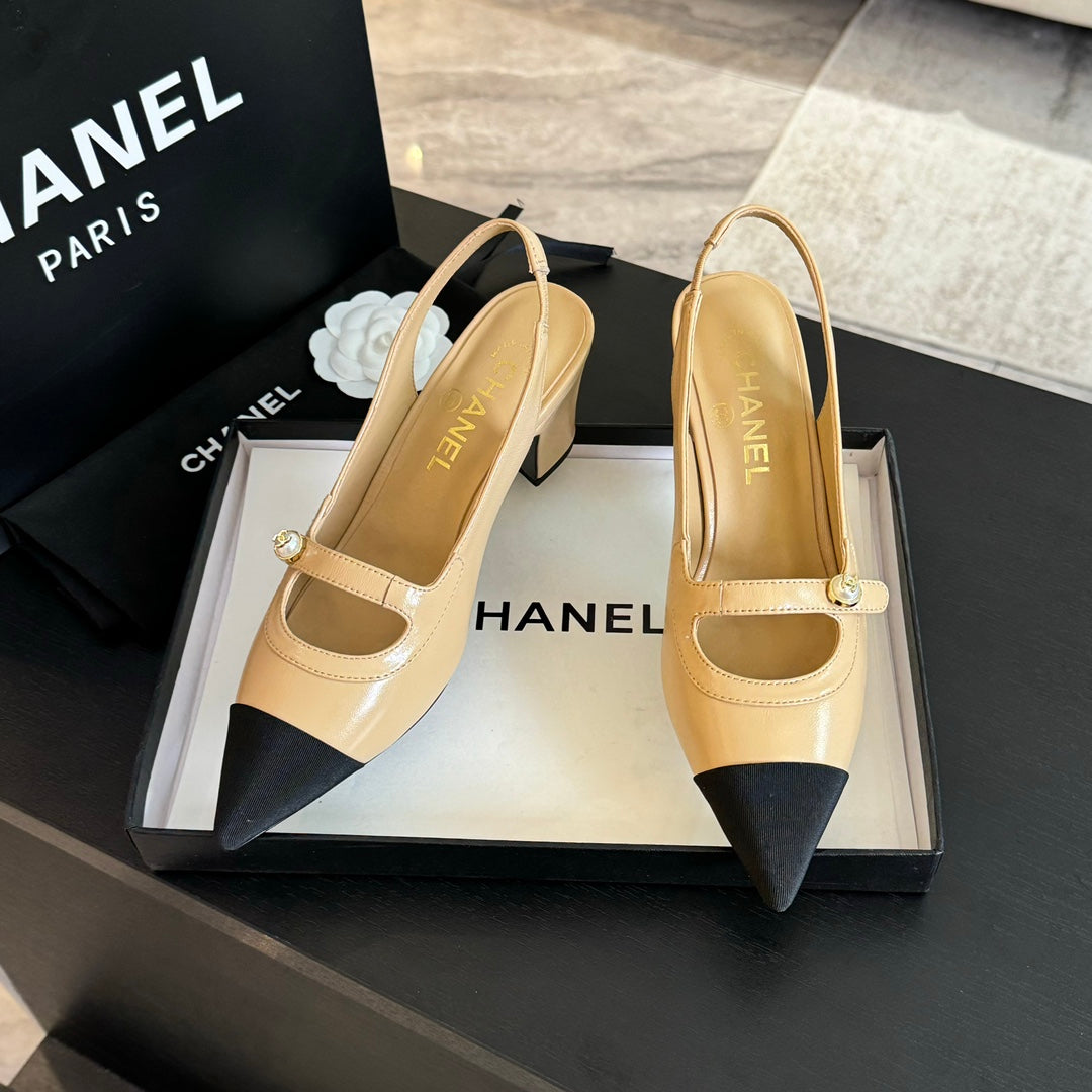 Double C WOMEN'S Slingback SPIRIT TOE Tan brown Lambskin