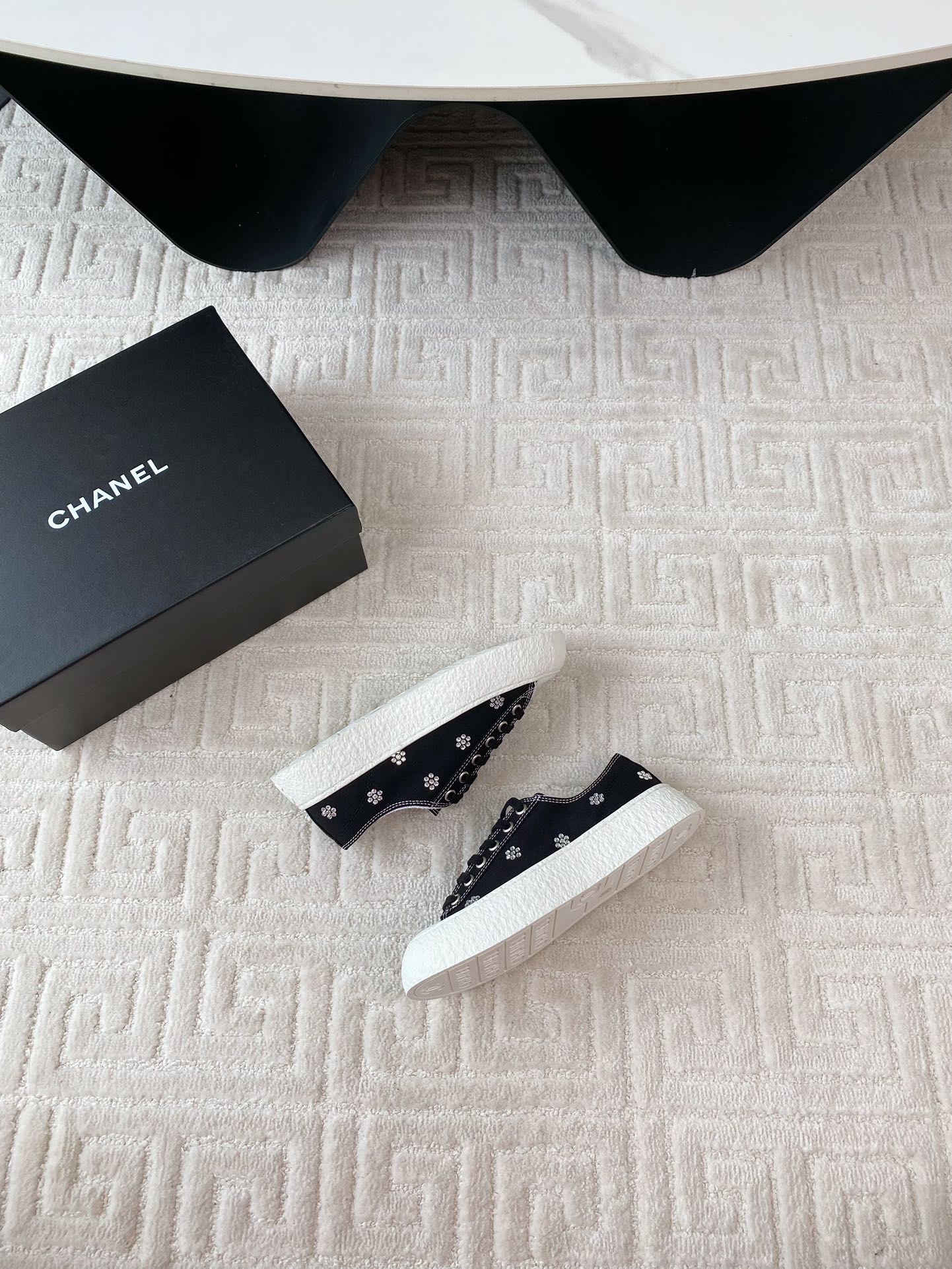 CC Low Sneaker 35mm Black Textile Fabric And Lambskin