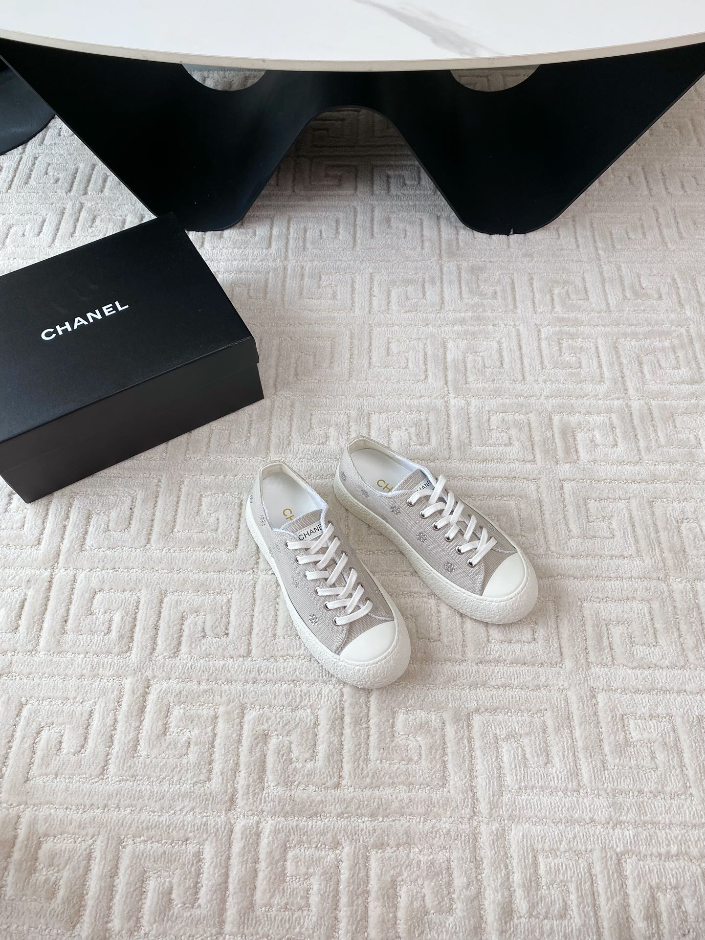 CC Low Sneaker 35mm White Grey Textile Fabric And Lambskin