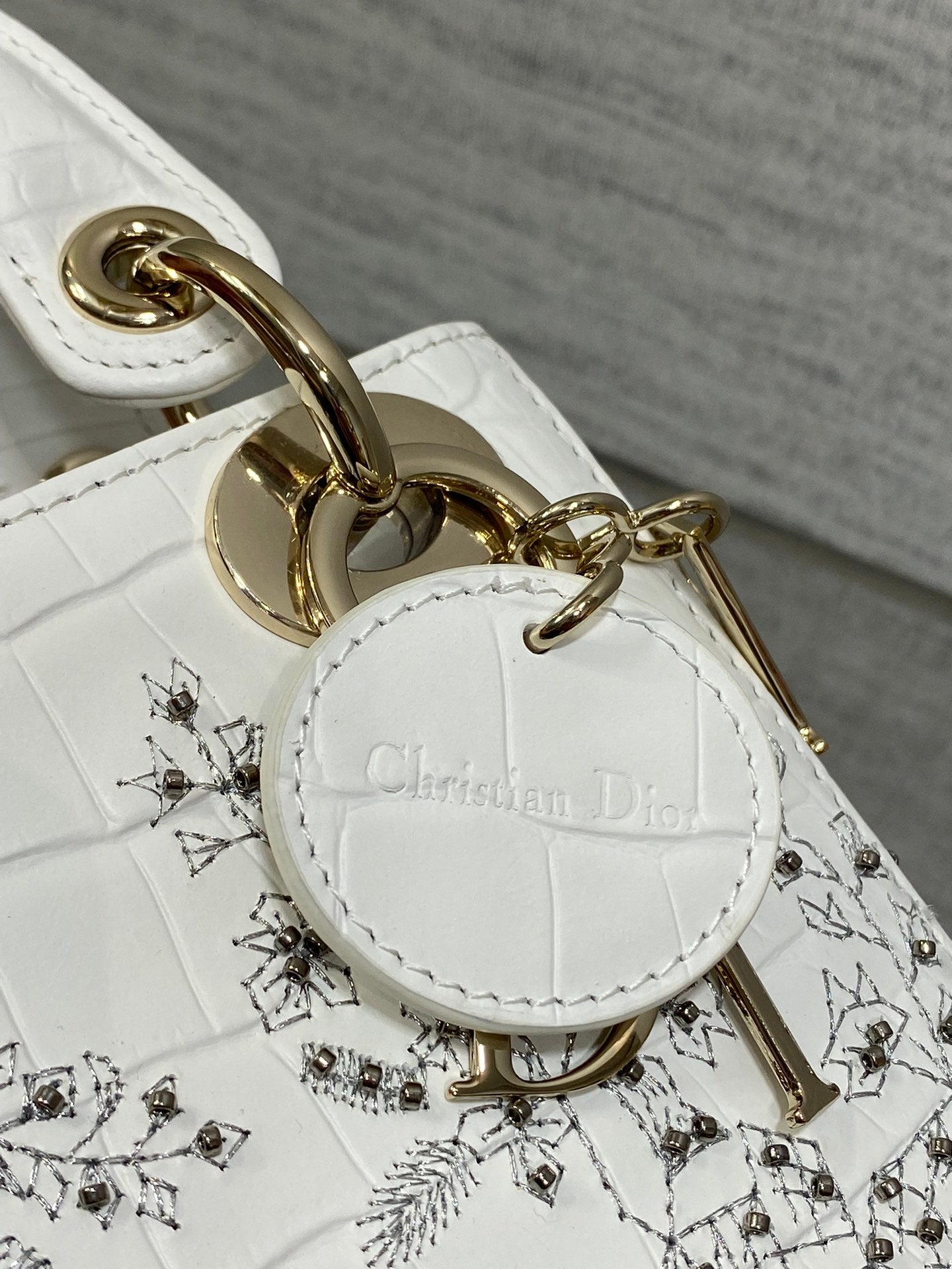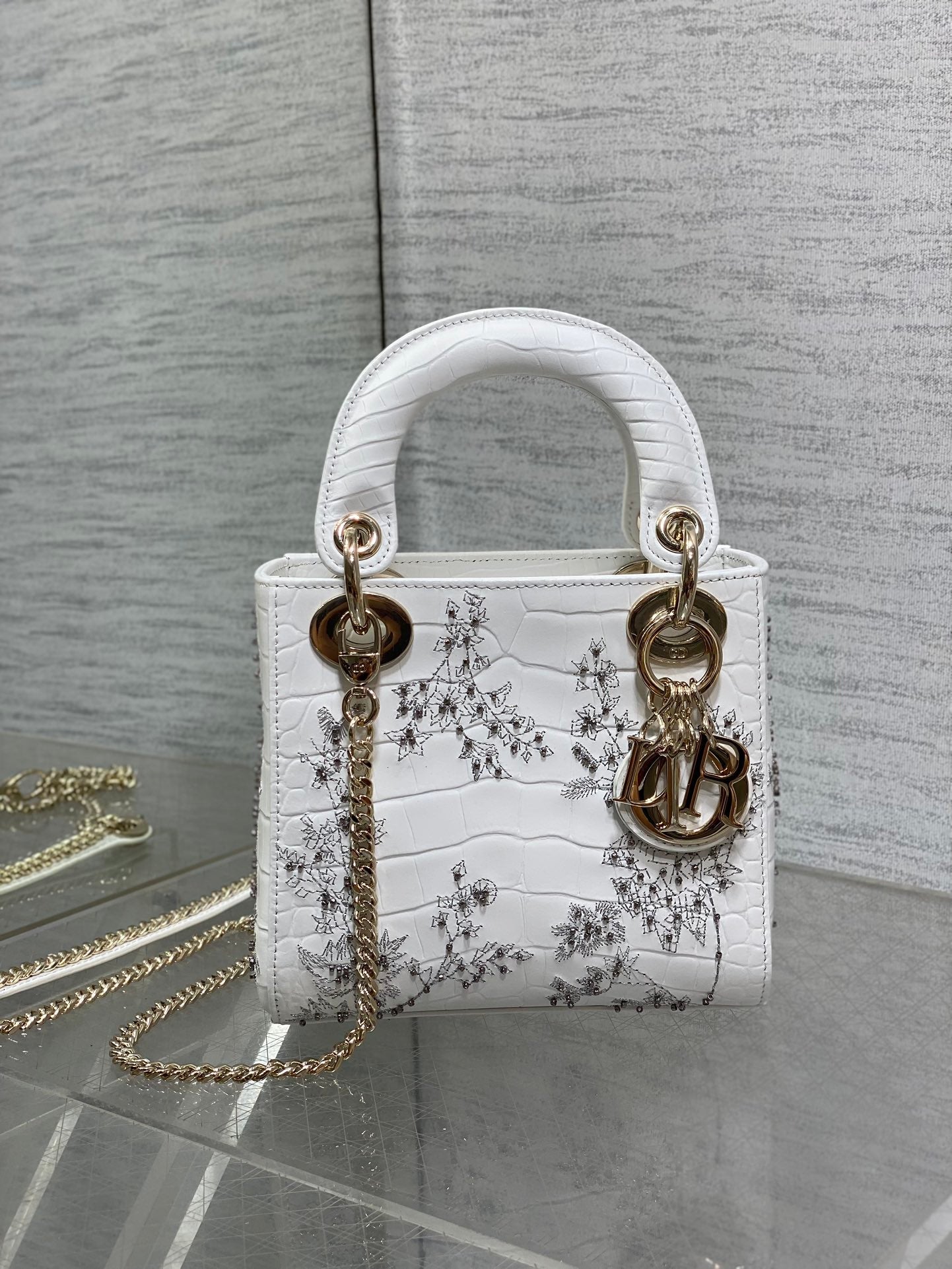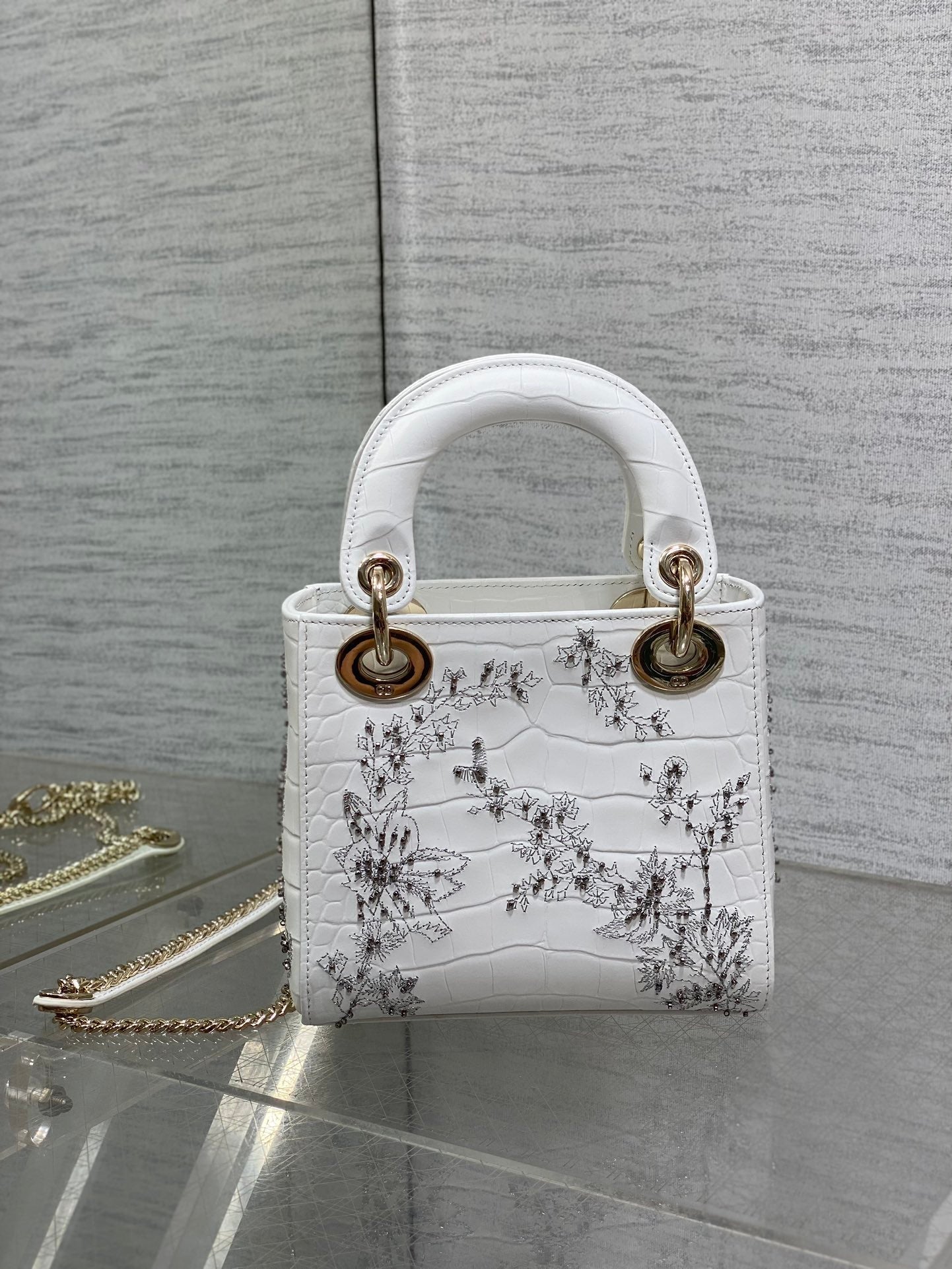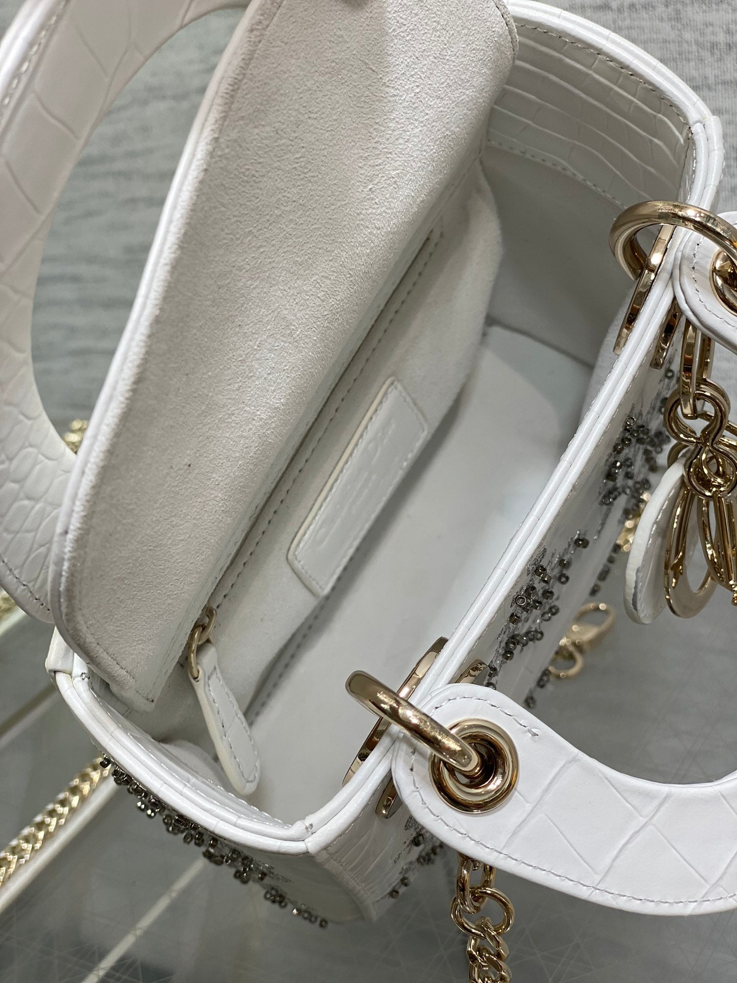 Lady Bag 17cm White Crocodile Leather Light Gold Hardware