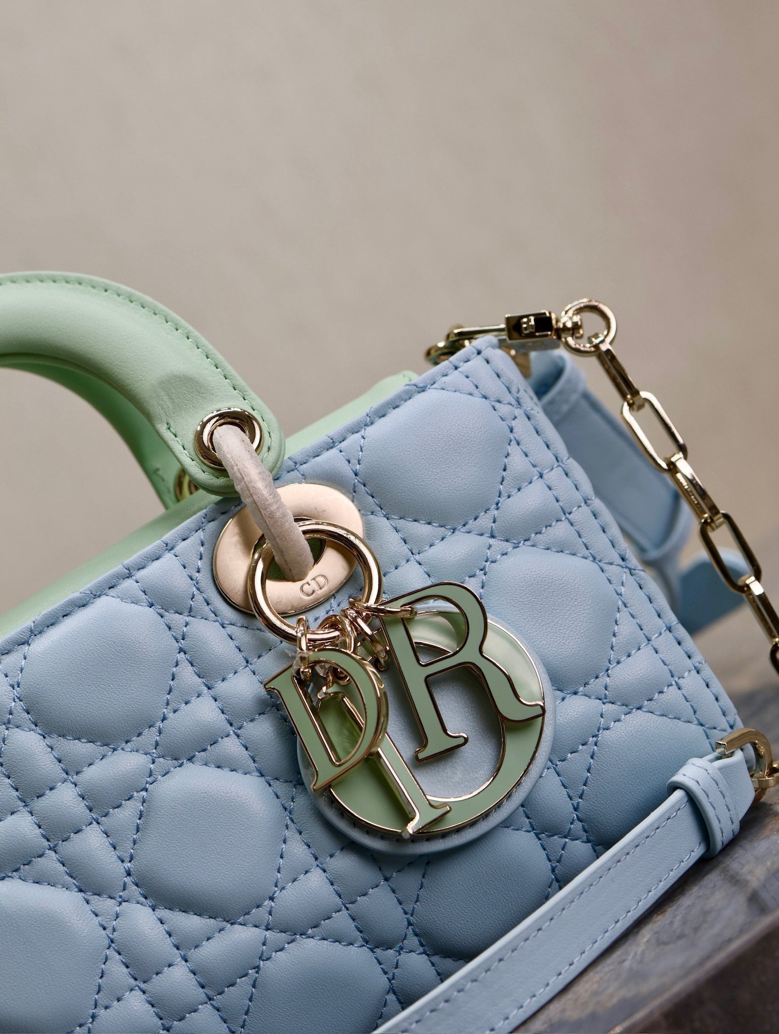 Lady D-Joy Bag 22 Celeste Blue Pale Green Lambskin