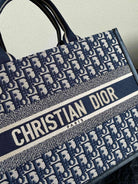 MEDIUM BOOK TOTE 36 BLUE OBLIQUE EMBROIDERY