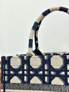 MEDIUM BOOK TOTE 37 BEIGE AND BLUE MACROCANNAGE EMBROIDERY