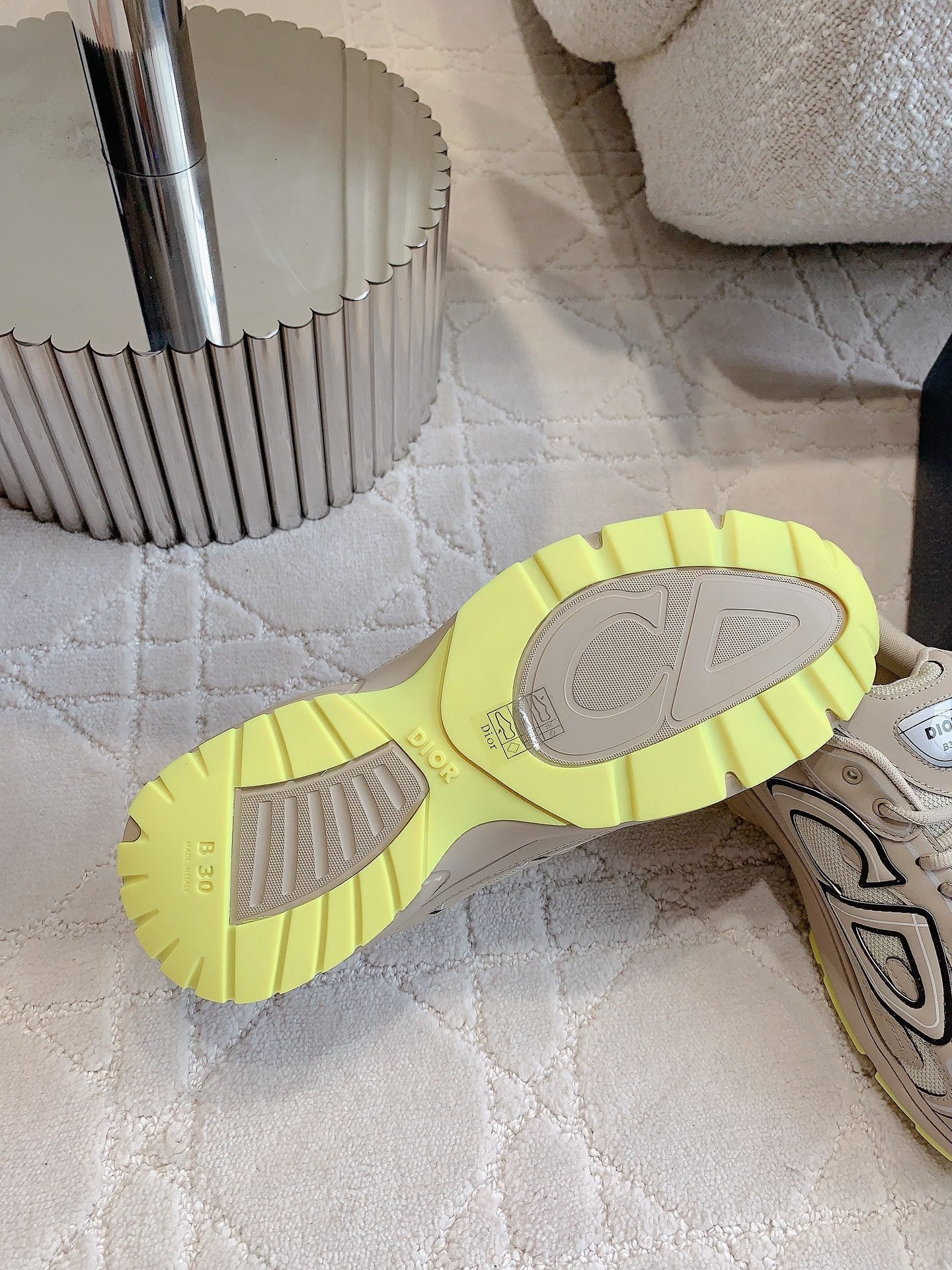 CD B30 Sneaker Dark Beige Mix Yellow Polyester Mesh Fabric And Calfskin