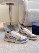 CD B57 Mid-Top Sneaker White Beige Mix Light Blue Calfskin And Oblique Jacquard