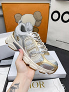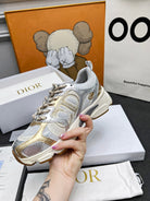 CD Chrono Sneaker Grey Gold Mesh Fabric And Calfskin