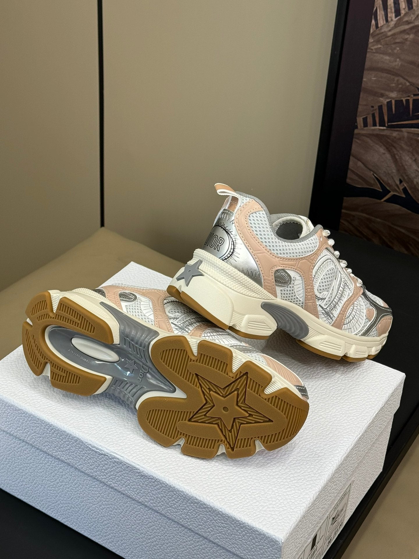 CD Chrono Sneaker Nude and Silver Mesh Fabric 992626