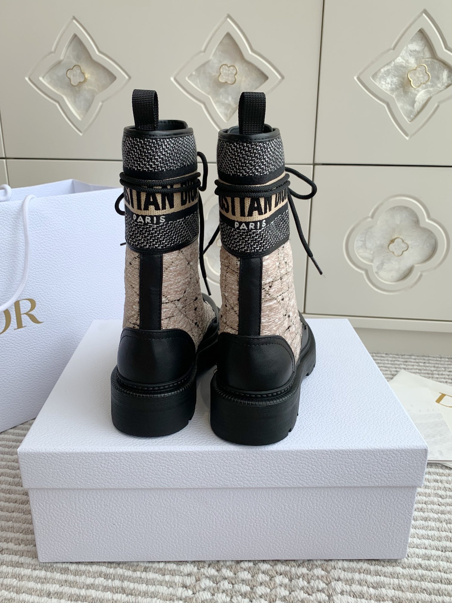 CD D-Major Ankle Boot In Dark Beige Mix Black Canvas And Cowhide 105071
