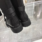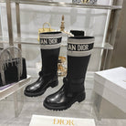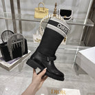 CD D-Major Boot Black Mix White Calfskin And Denim Fabric