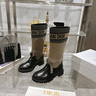 CD D-Major Boot Taupe Mix Black Calfskin And Denim Fabric