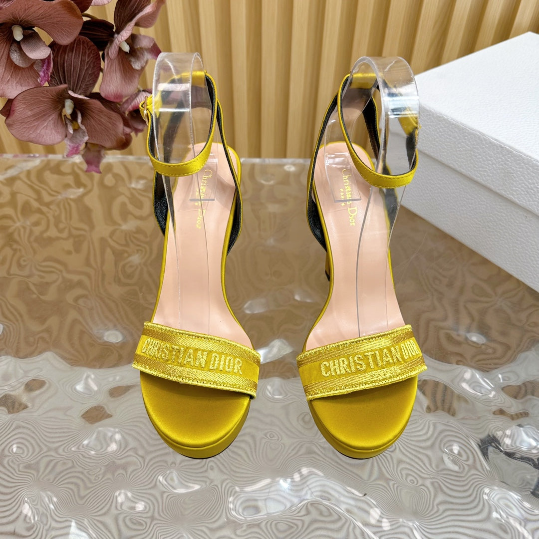 CD Dway Heeled Sandal 120mm Yellow Silk And Lambskin