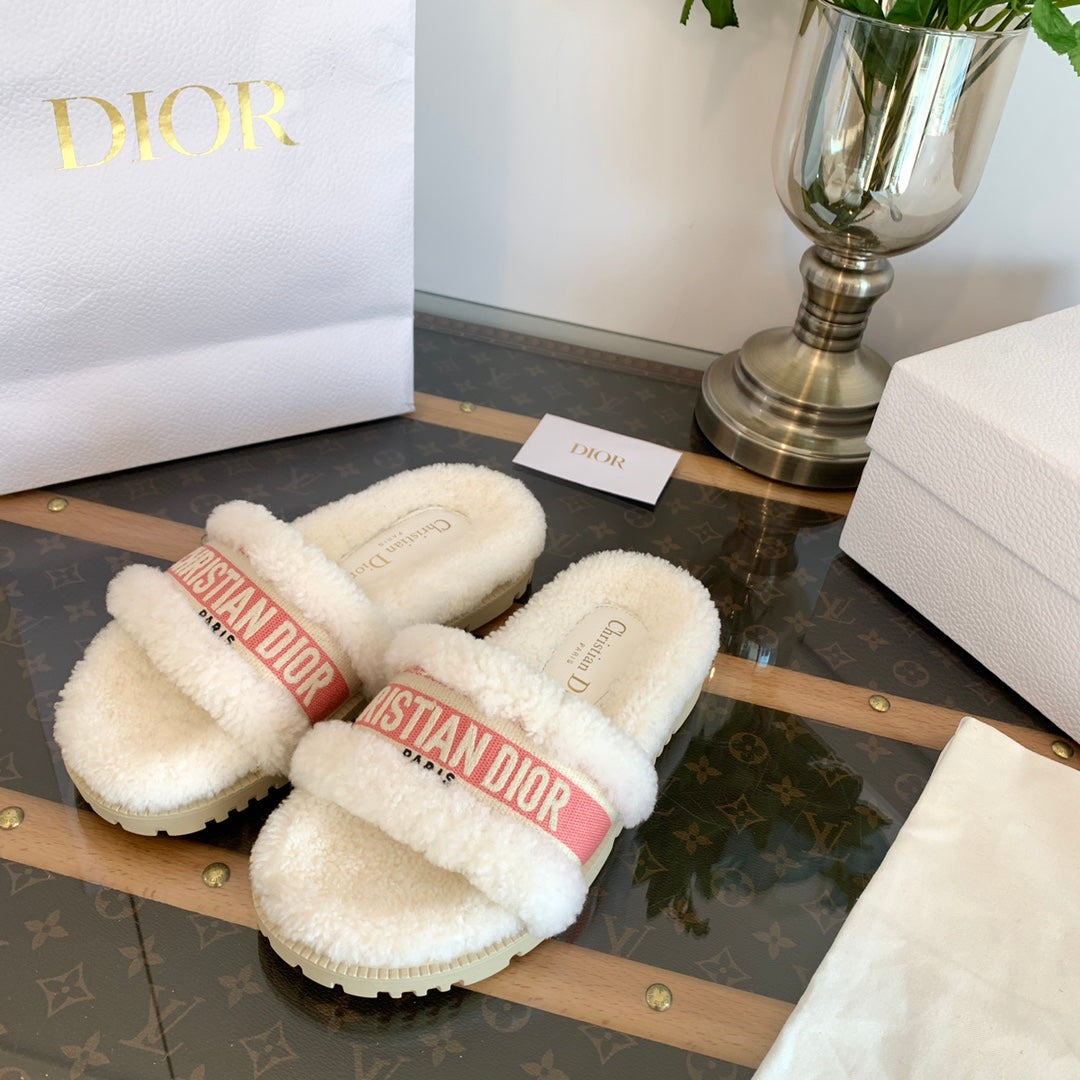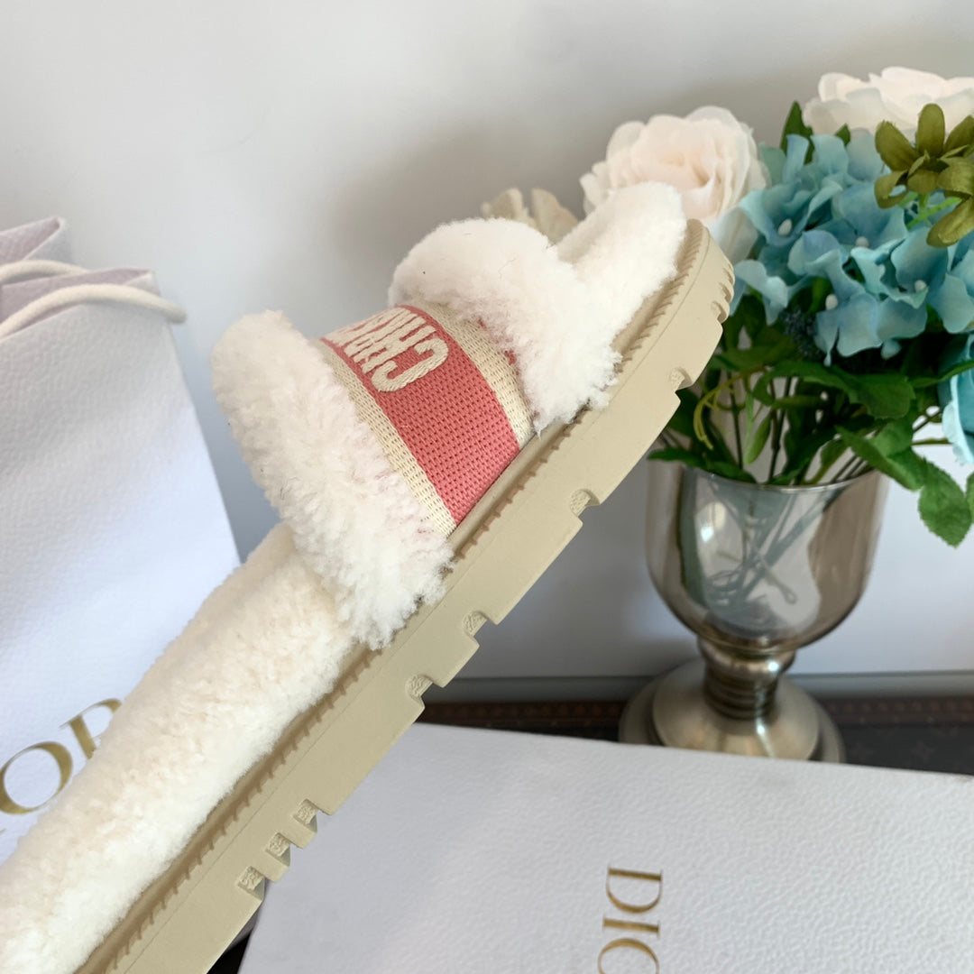 CD Dway Slide Pink White Fleece Lining And Canvas Fabric
