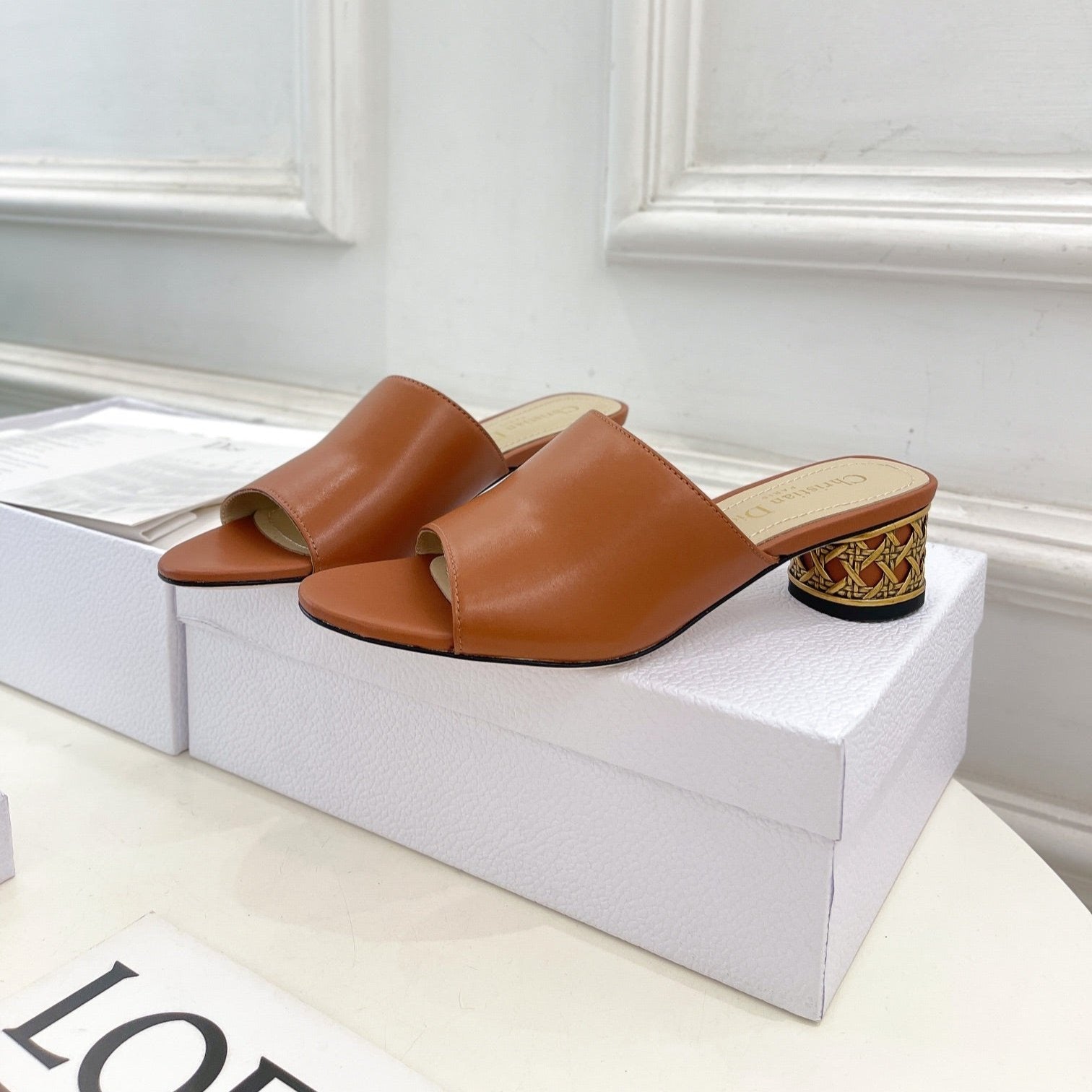 CD Icon Heeled Slide 40mm Brown Calfskin