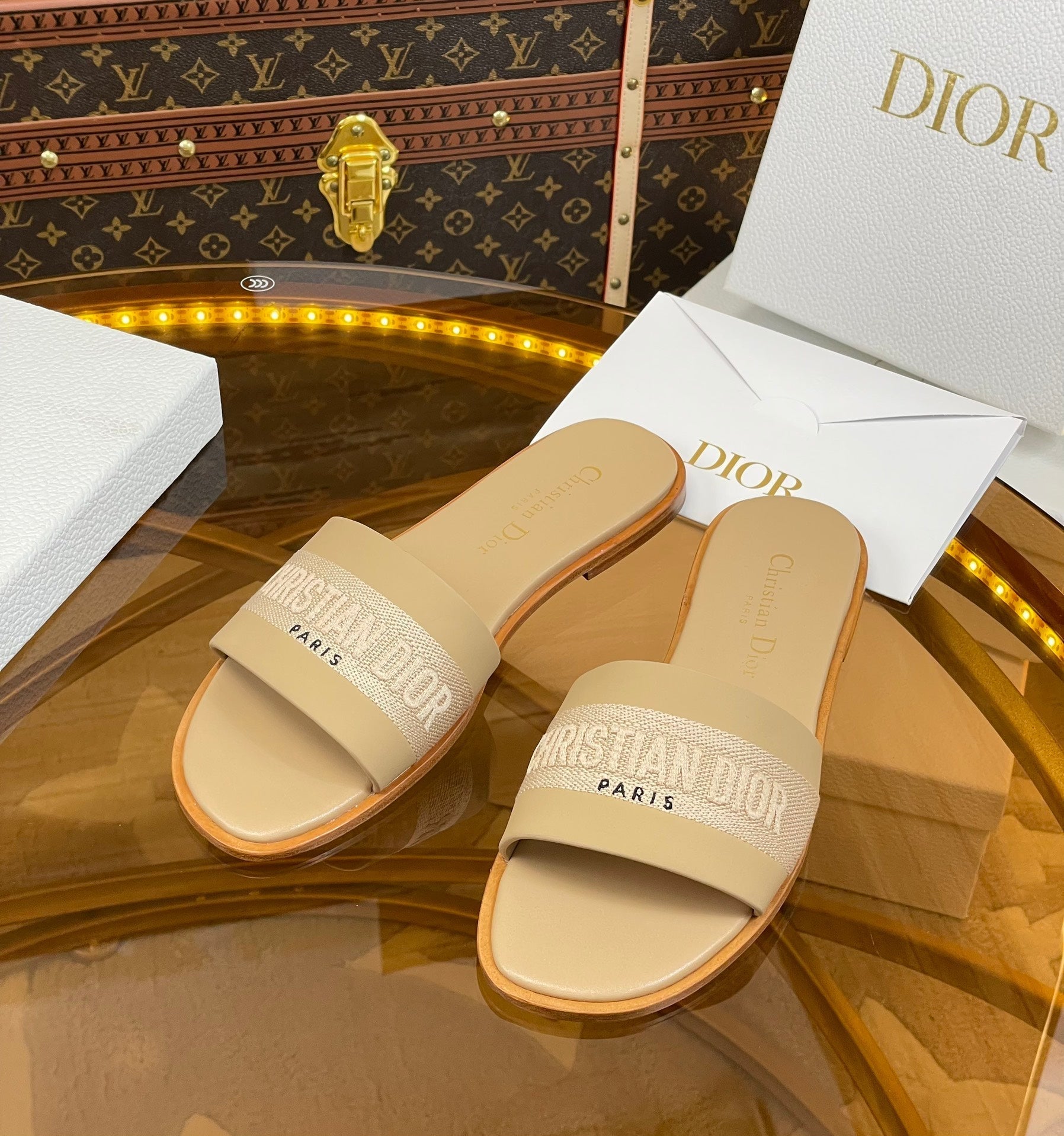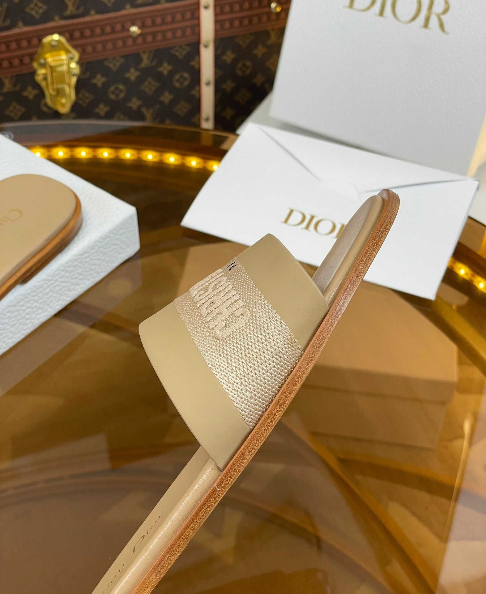 cd slide beige calfskin embroidered cotton