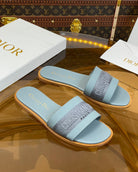 cd slide pastel blue calfskin embroidered cotton
