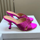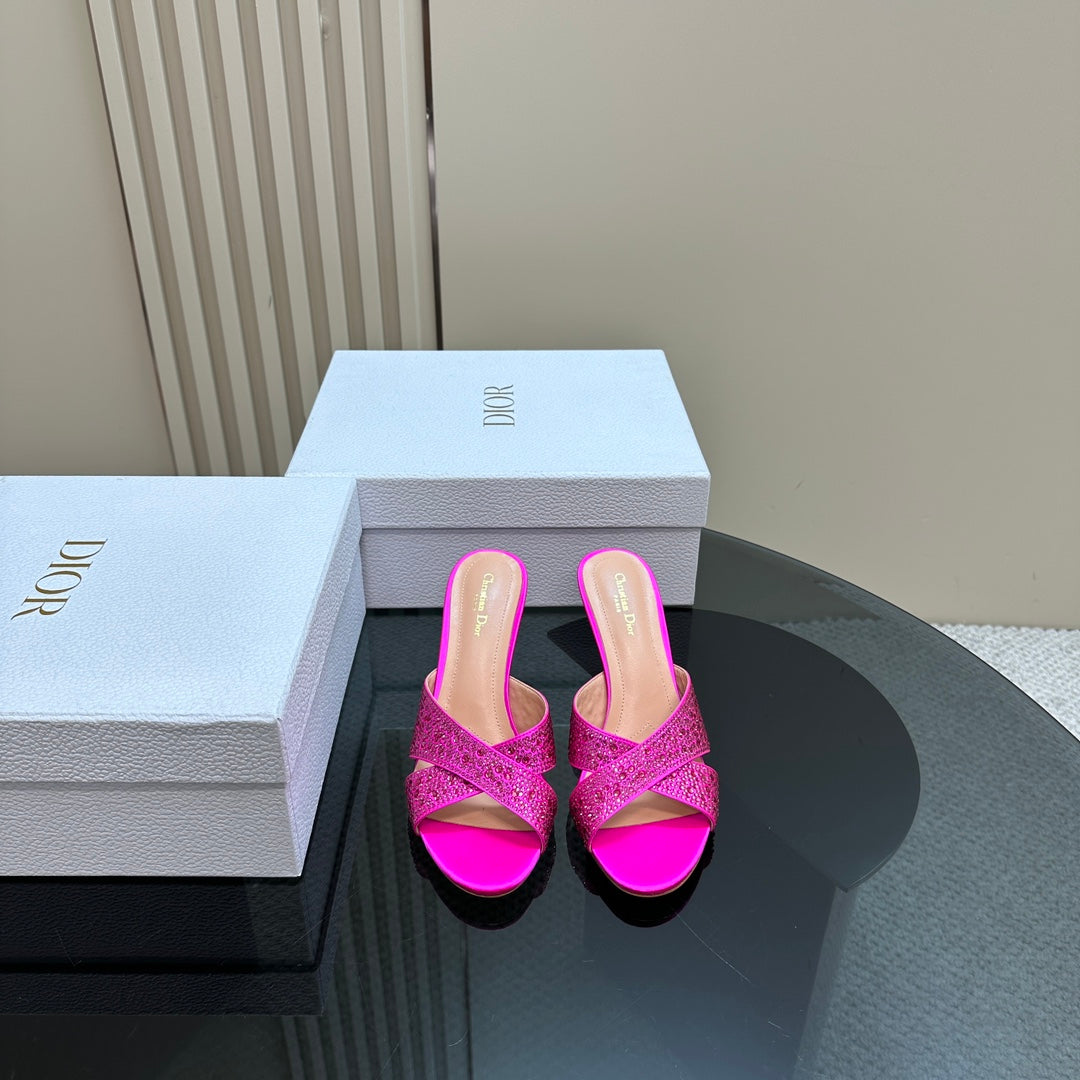 CD Tribales Heeled Slide 80mm Dark Pink Lambskin And Studded With Stones