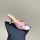 CD Tribales Heeled Slide 80mm Light Pink Lambskin And Studded With Stones