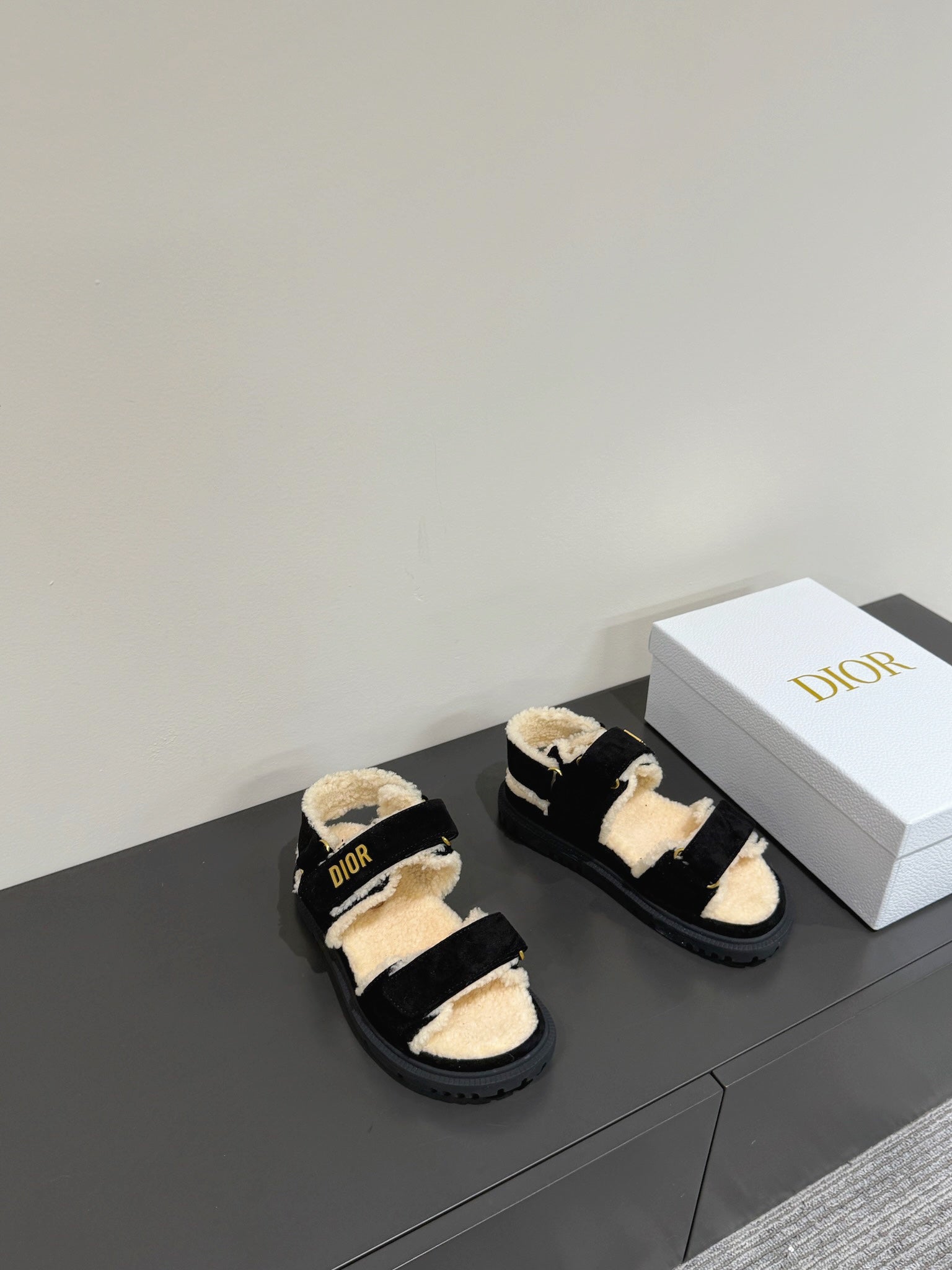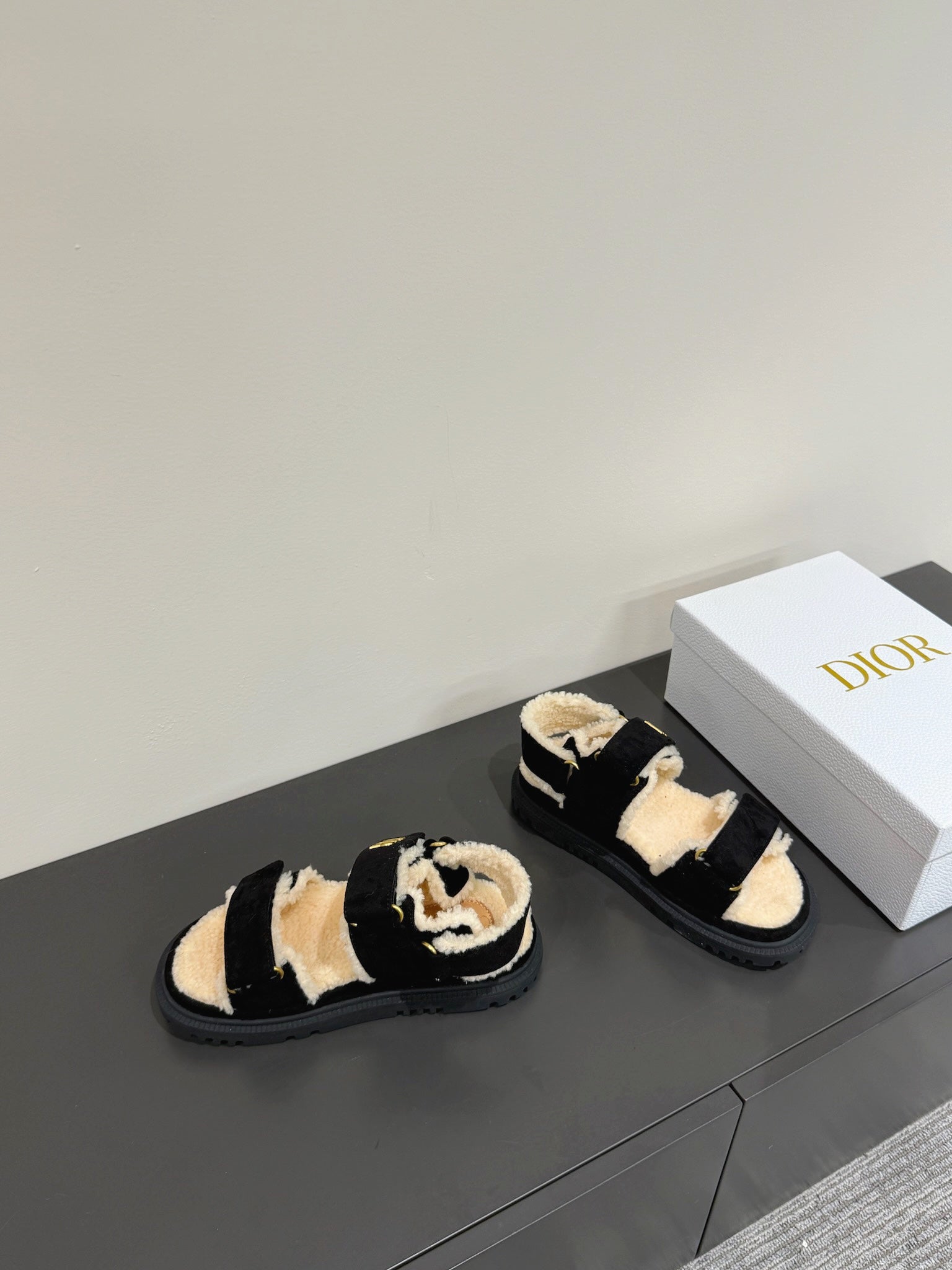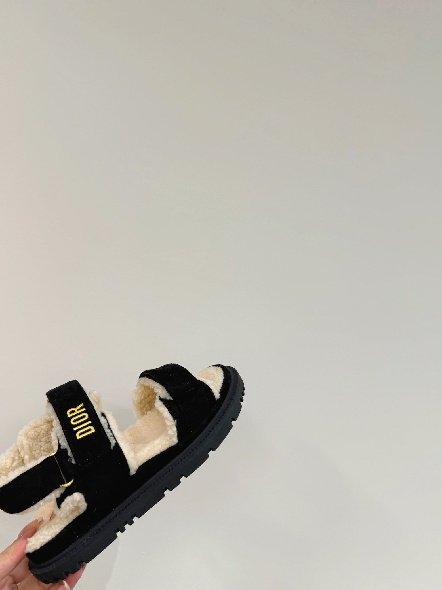 Dioract Sandal In Black Suede And Wool Fleece Lining 109869