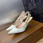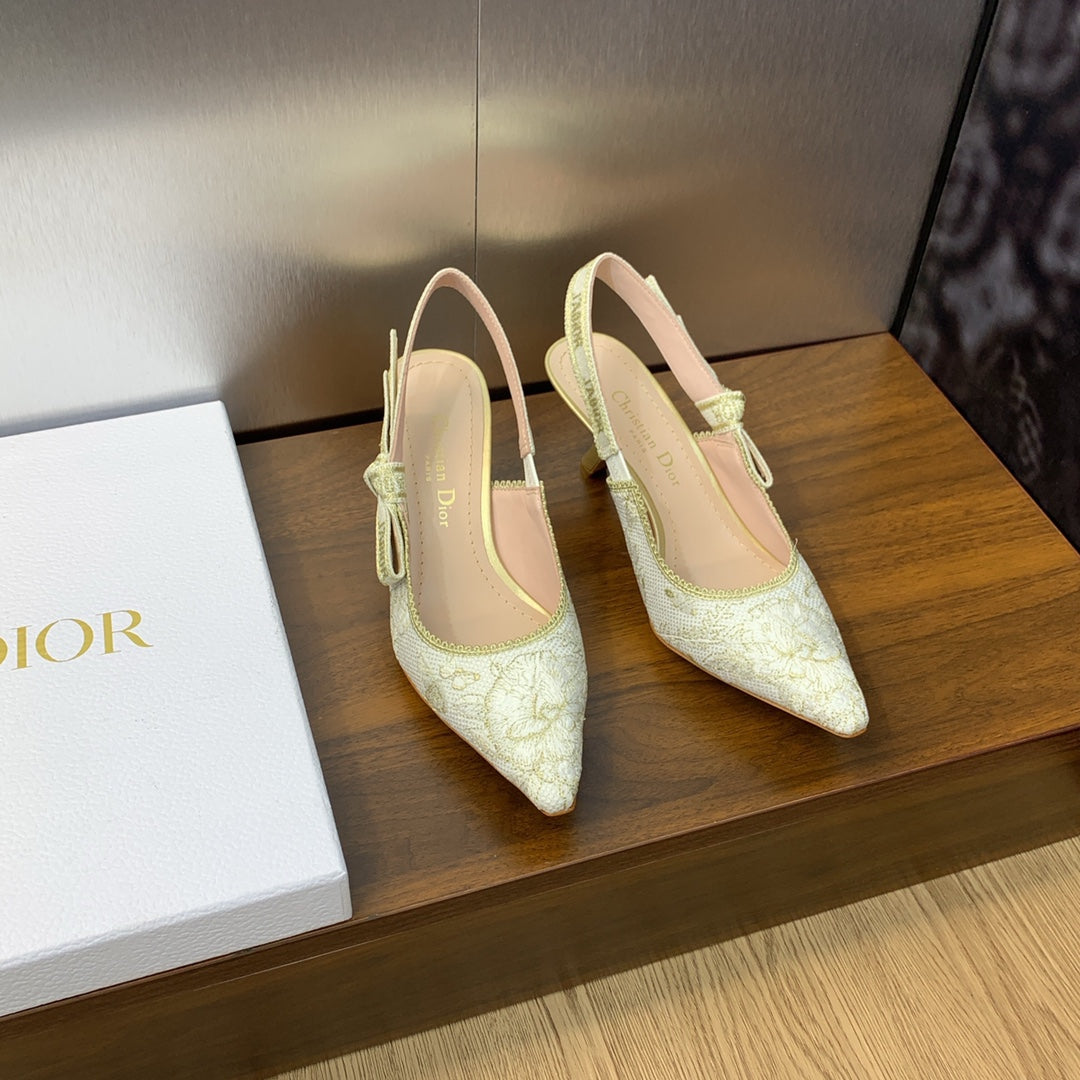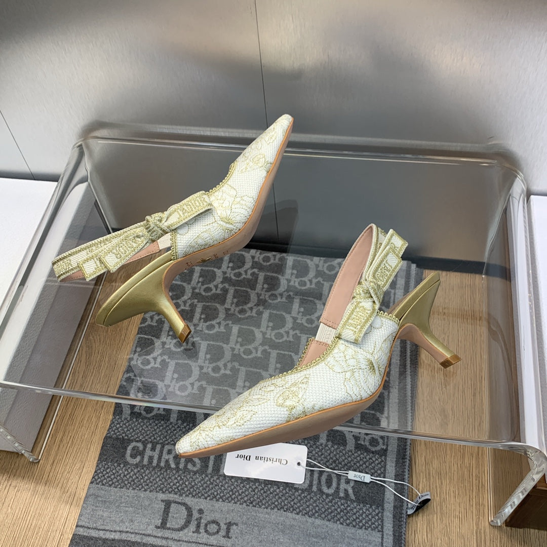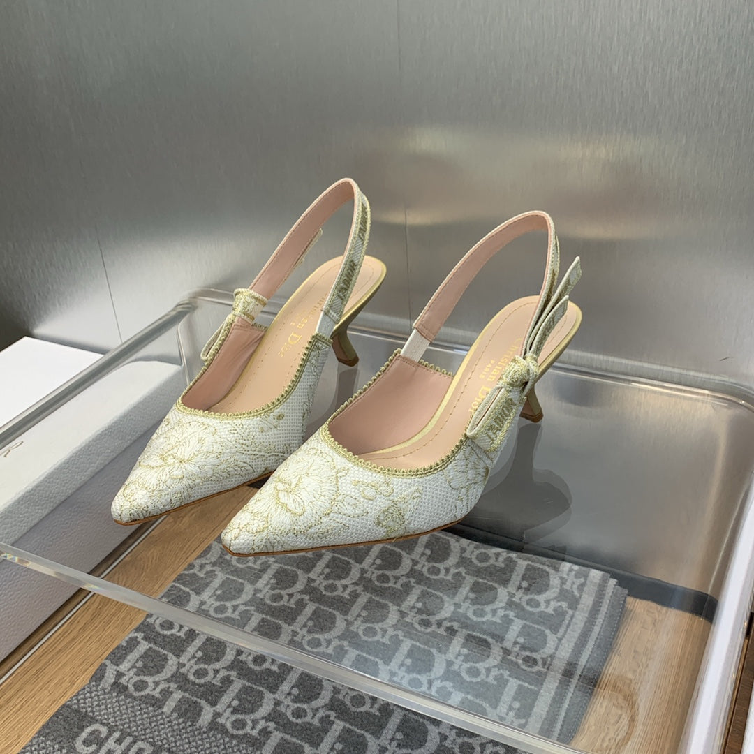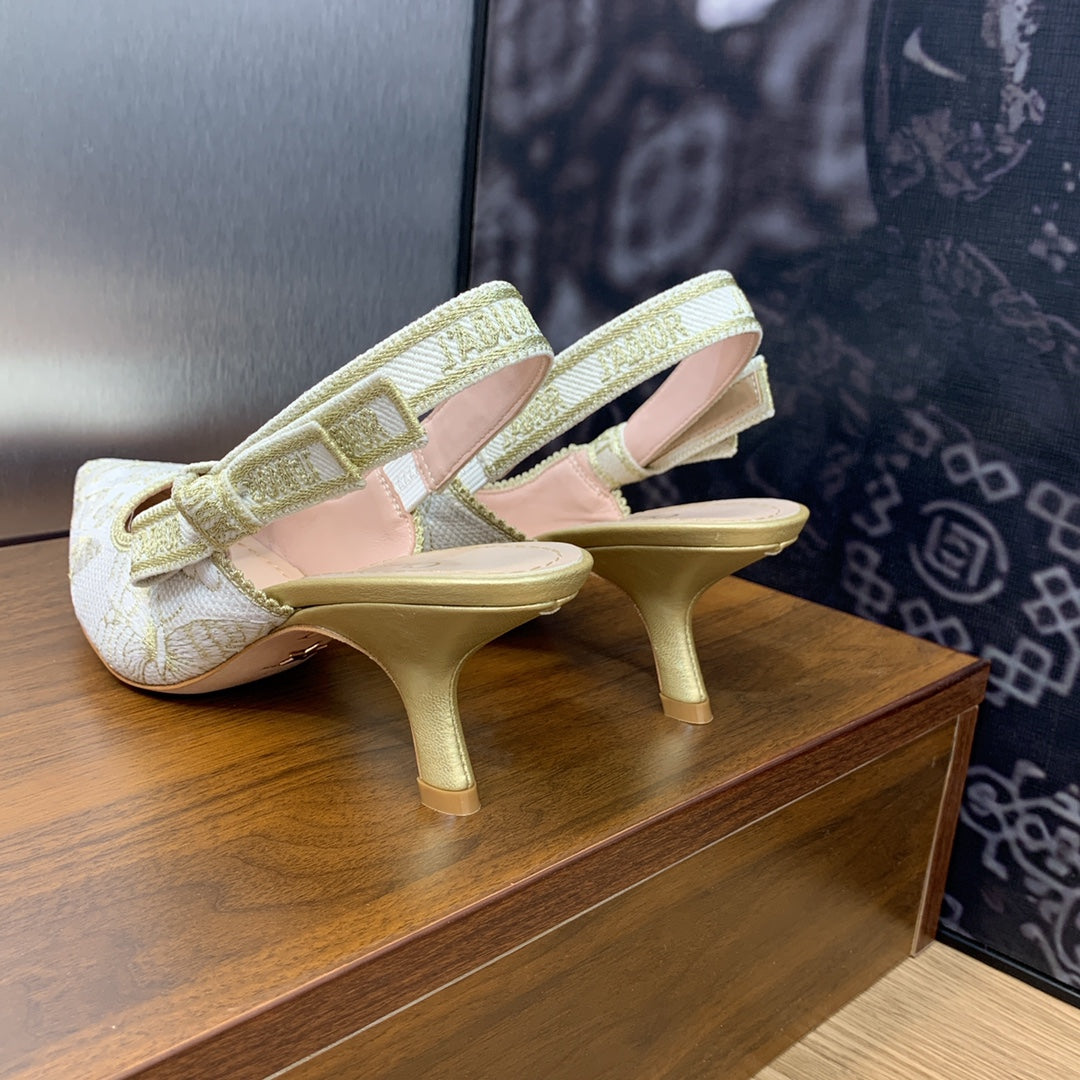 JAdior Slingback Pump 65 White and Gold-Tone Toile de Jouy Mexico Embroidered Cotton with Metallic Thread