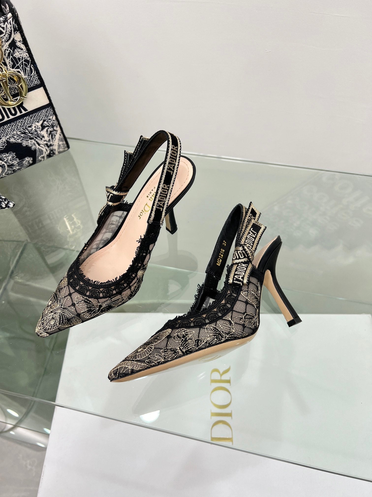 J'Adior Slingback Pump 95mm In Black Lace Fabric 100837