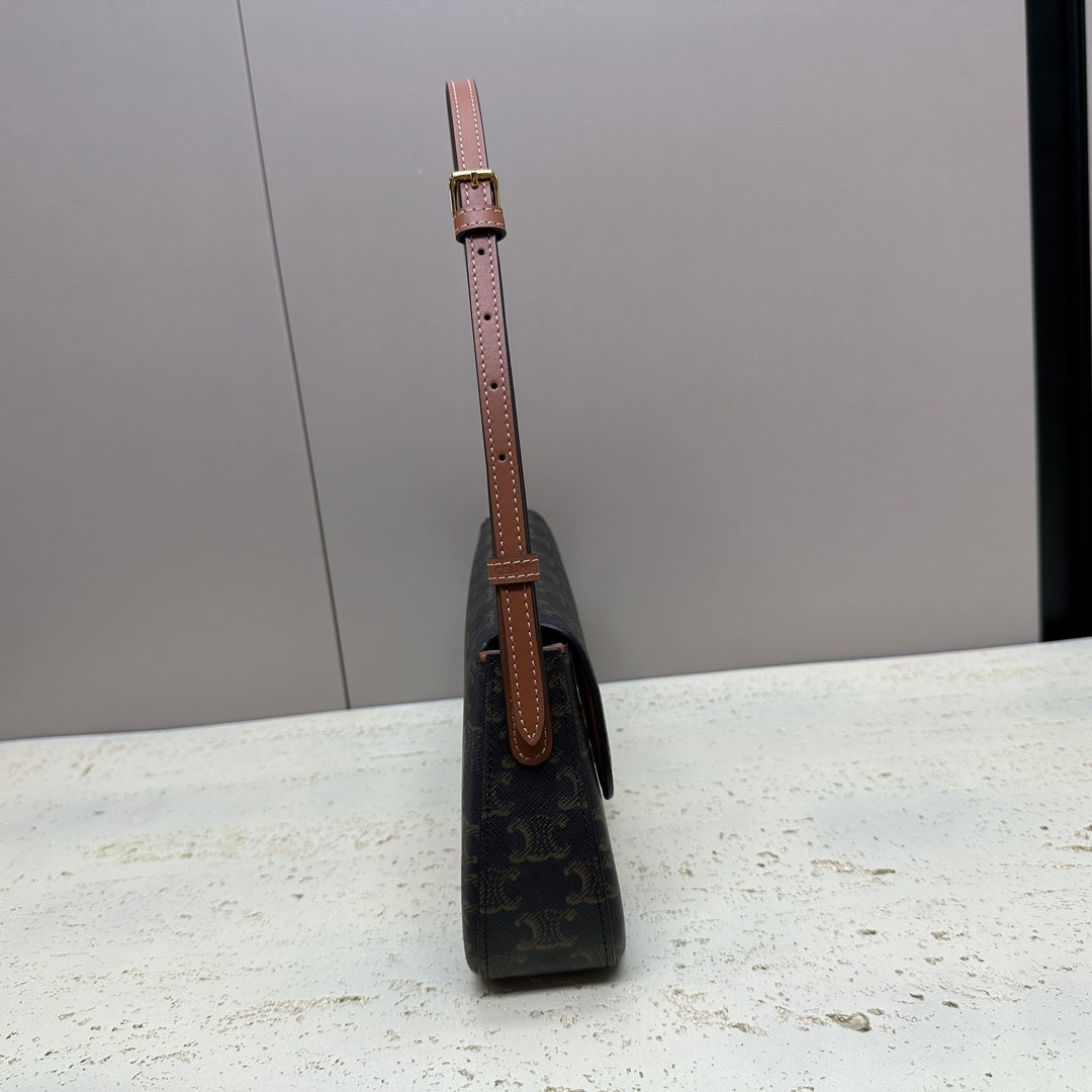 LOLA BAGUETTE BAG 28 IN DARK BROWN MONOGRAM CANVAS AND CALFSKIN