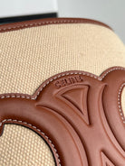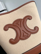 SMALL BUCKET CUIR TRIOMPHE 24CM IN STRIPED TEXTILE AND TAN CALFSKIN