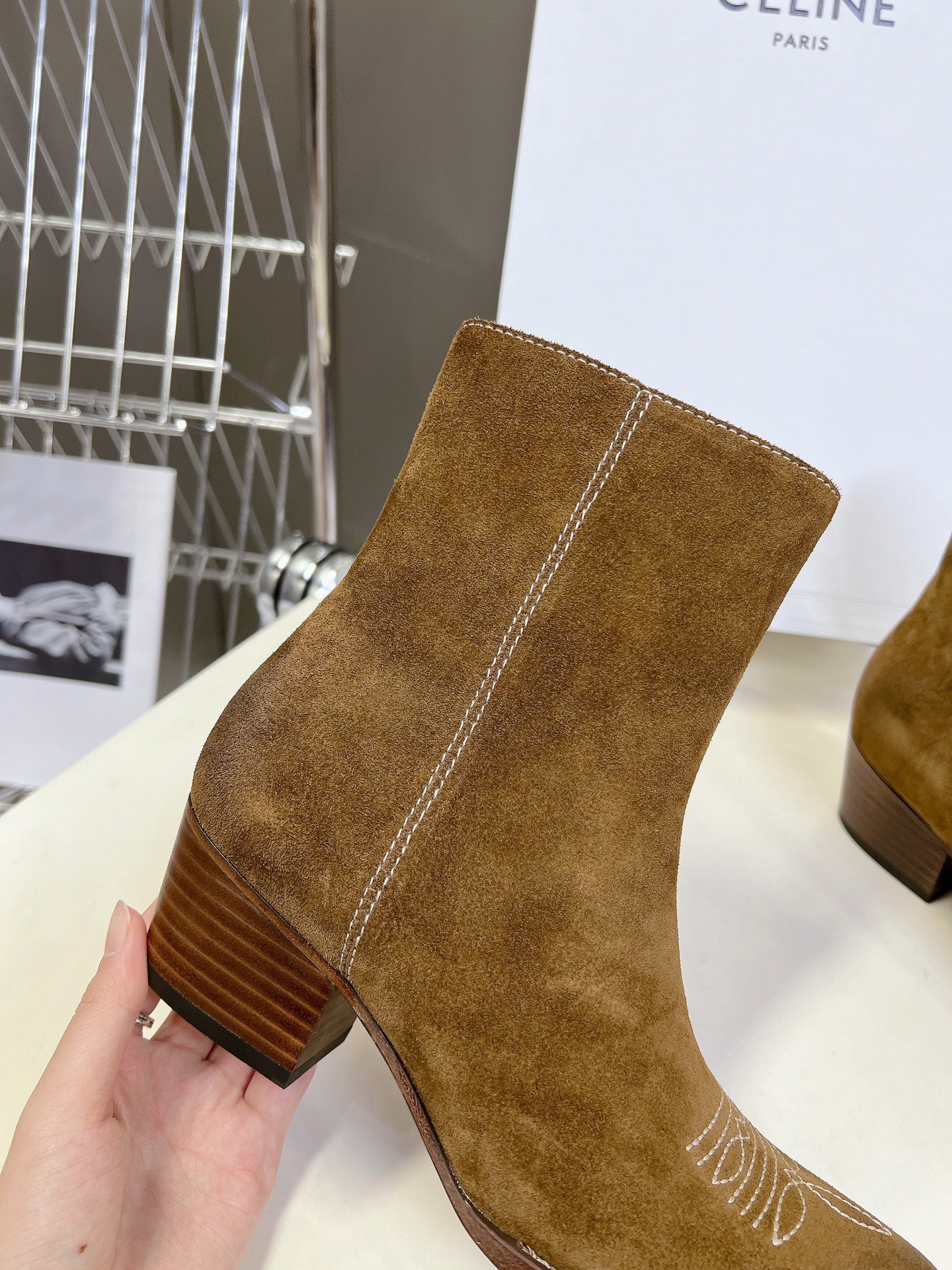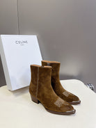 CELINE 25 Cowboy Boots Brown Suede 434416