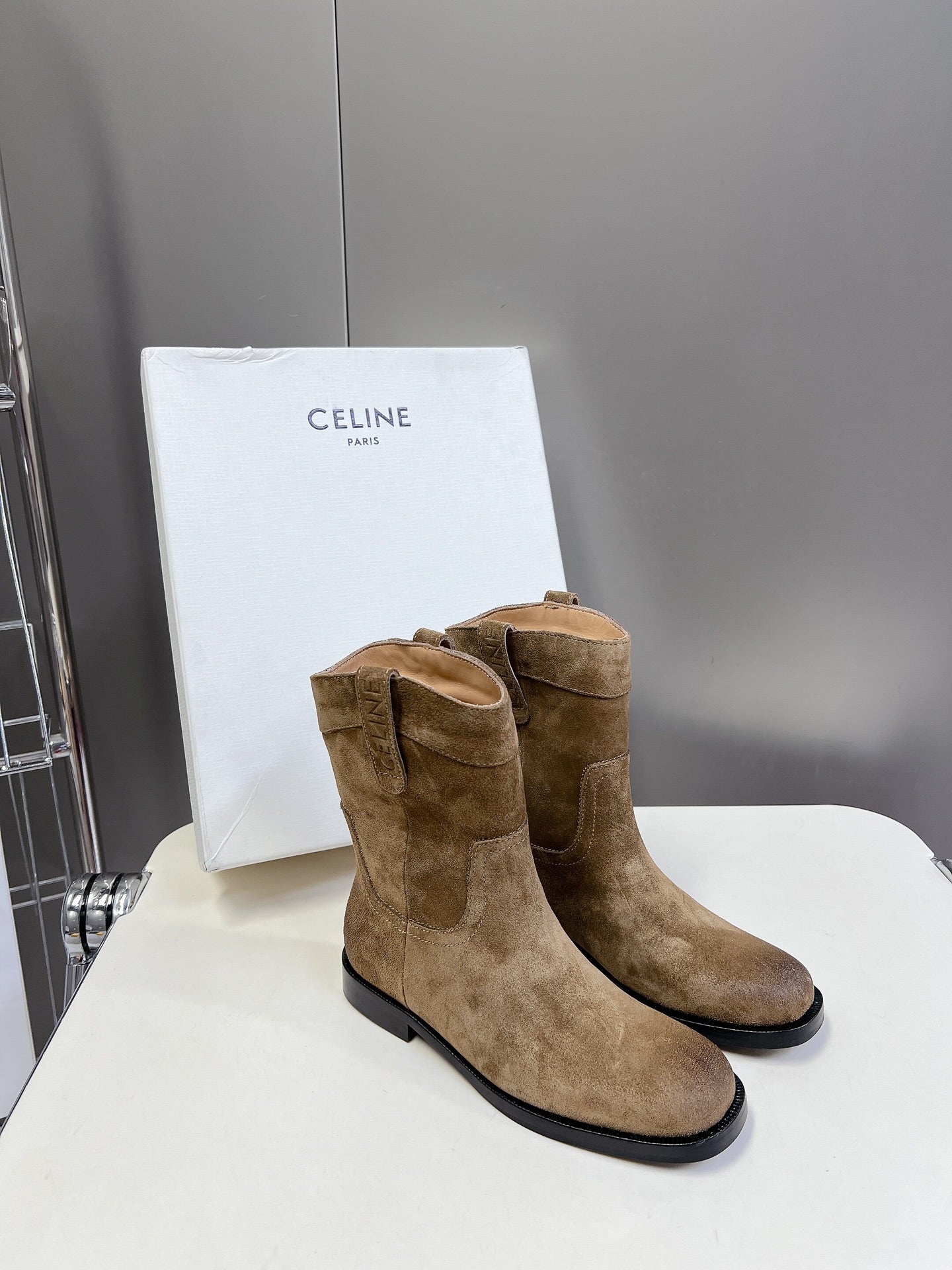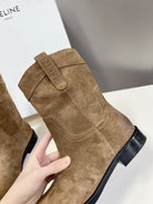 CELINE 25 cowboy boots light brown suede 434411