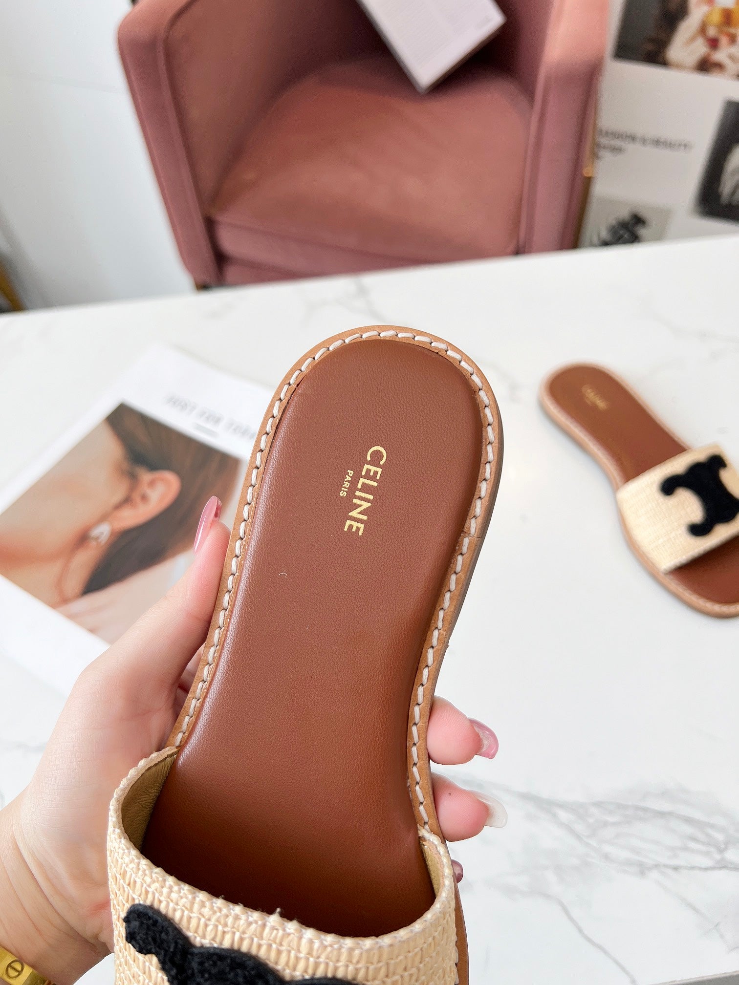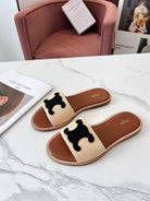 Celine 25C Slippers Beige mix Black Fabric with Calfskin 238156