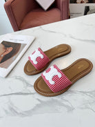 Celine 25C Slippers Red mix White Fabric with Calfskin 238167